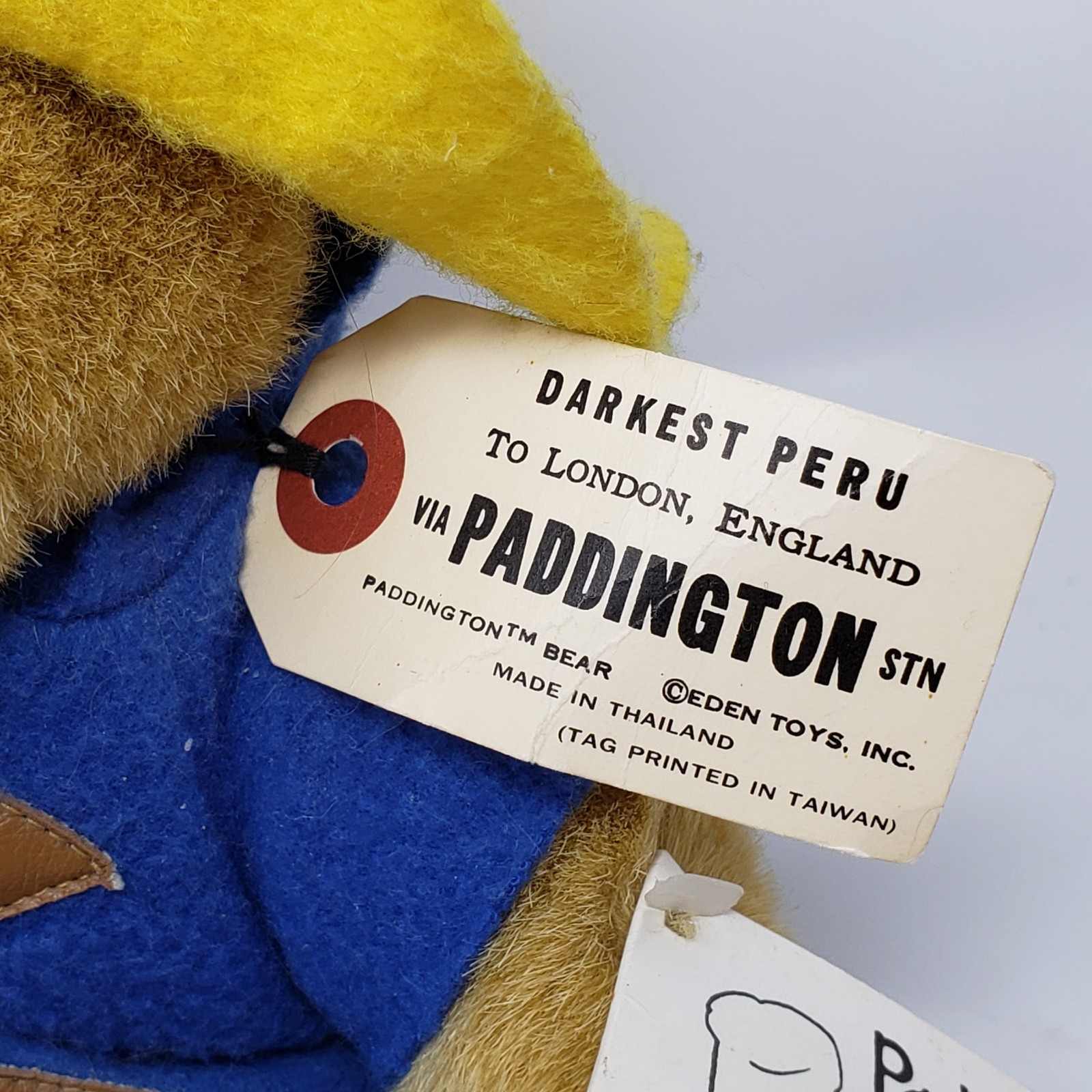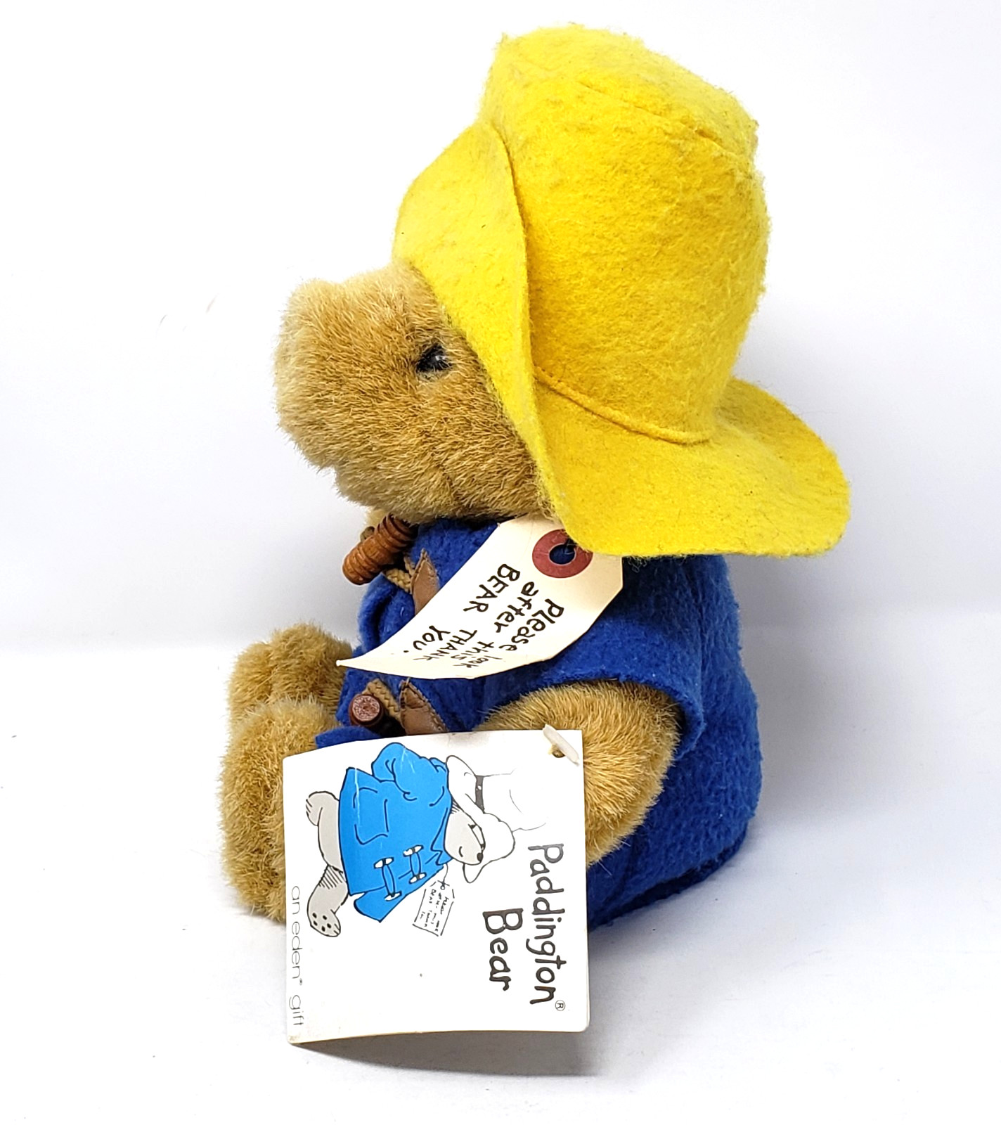 • Vintage Paddington Bear Plush Animal Eden Toys 8" w/ Tags Yellow Hat Toggle Coat