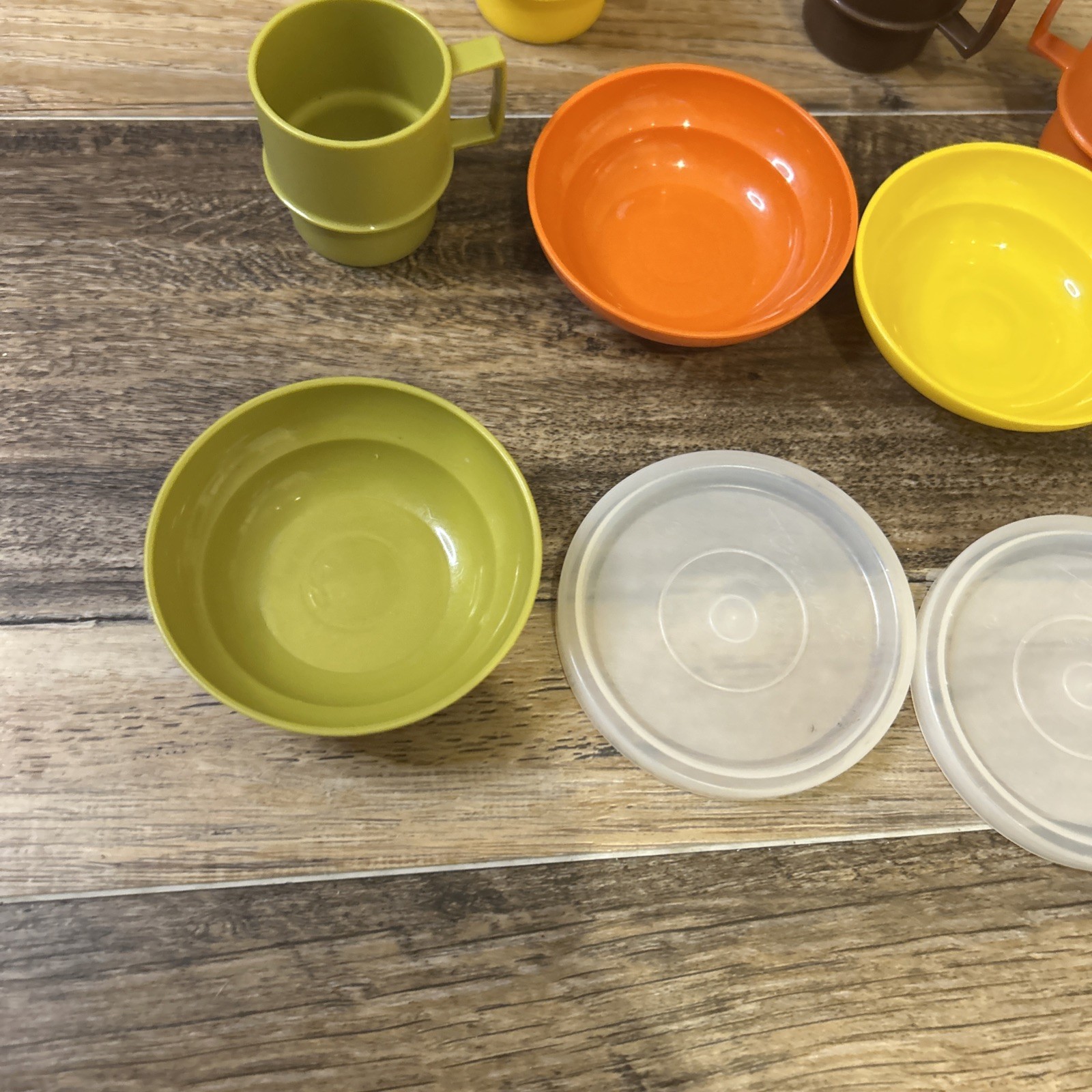 как выглядит Vintage 1970s Tupperware Mini Childrens Play Set: Pitcher, Cups, Bowls, Lids фото