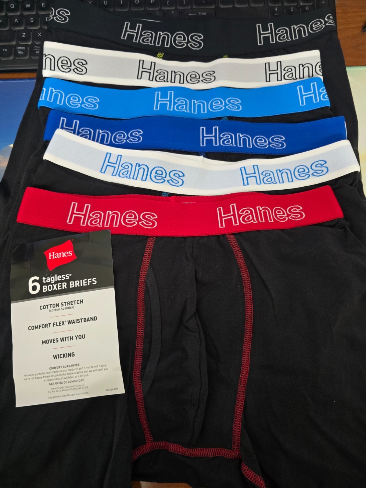 как выглядит Hanes Mens Boxer Briefs Moisture-Wicking Stretch-Cotton 6 Pack M фото