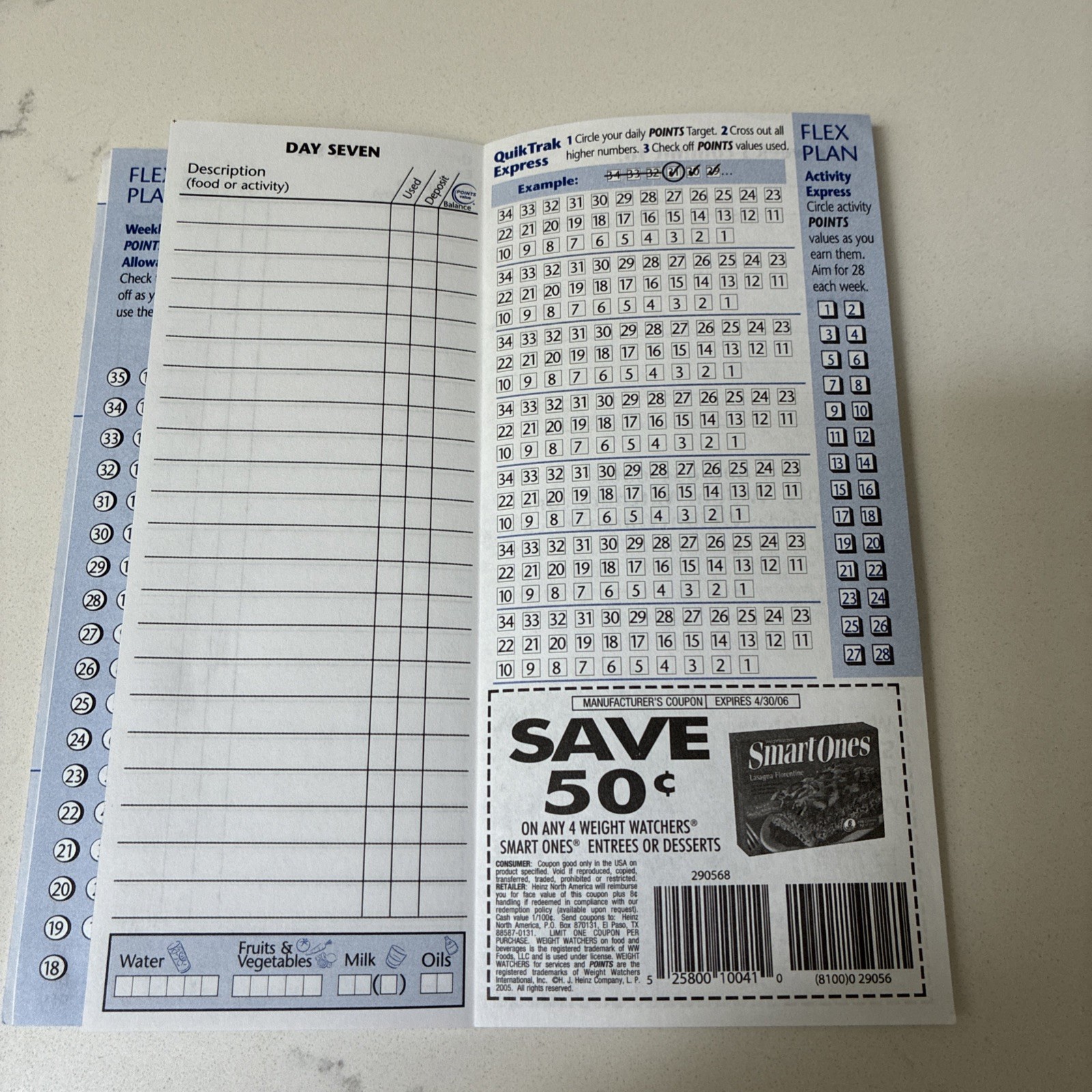 Особенности: Core & Flex Plans, Weekly Points Allowance, 7 days to track food, water, activity., Good Health Guidelines, QuikTrak Express, Notes Section
