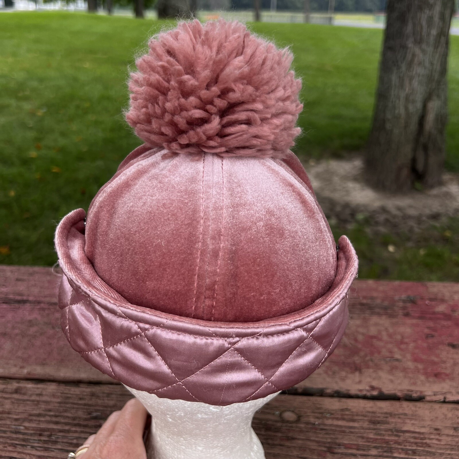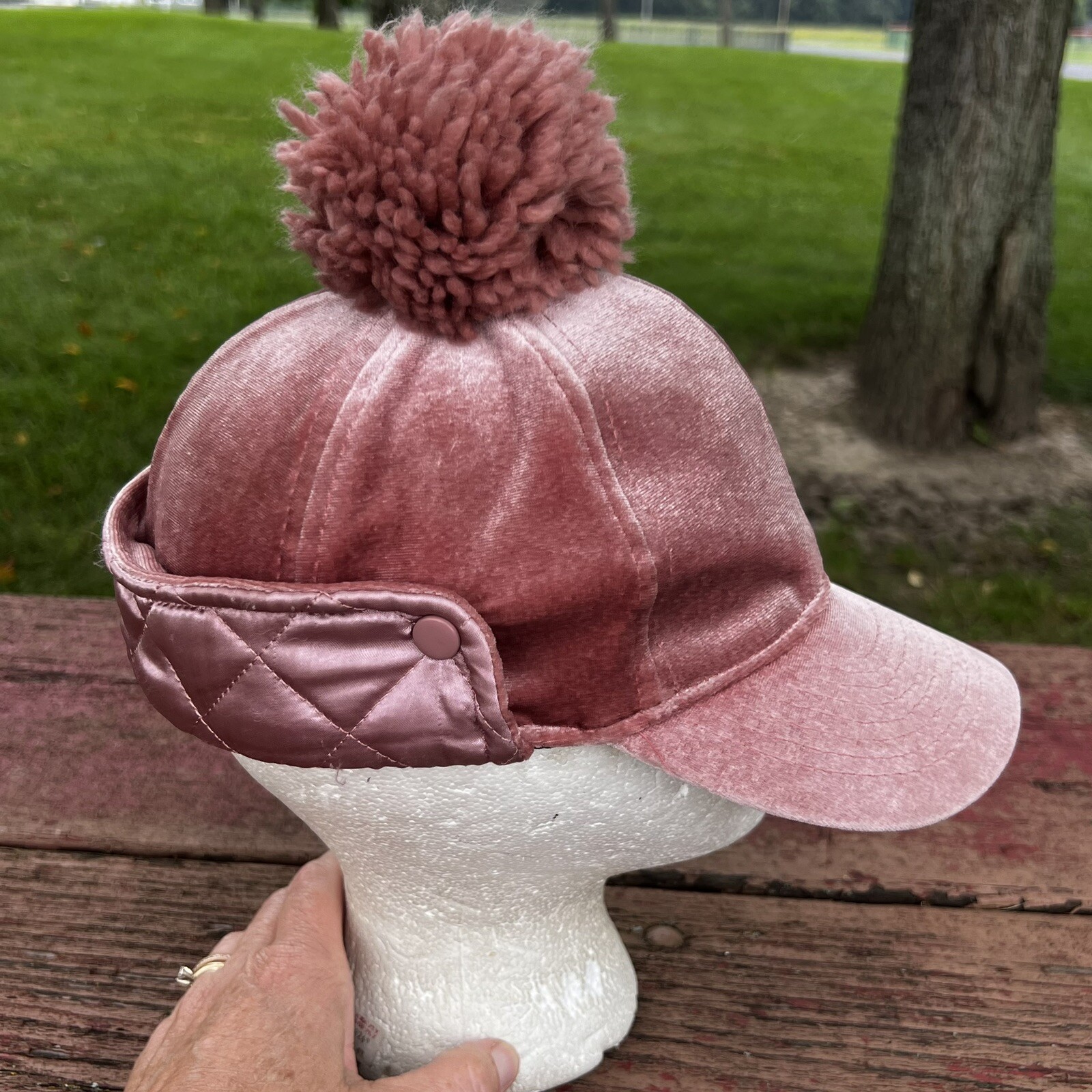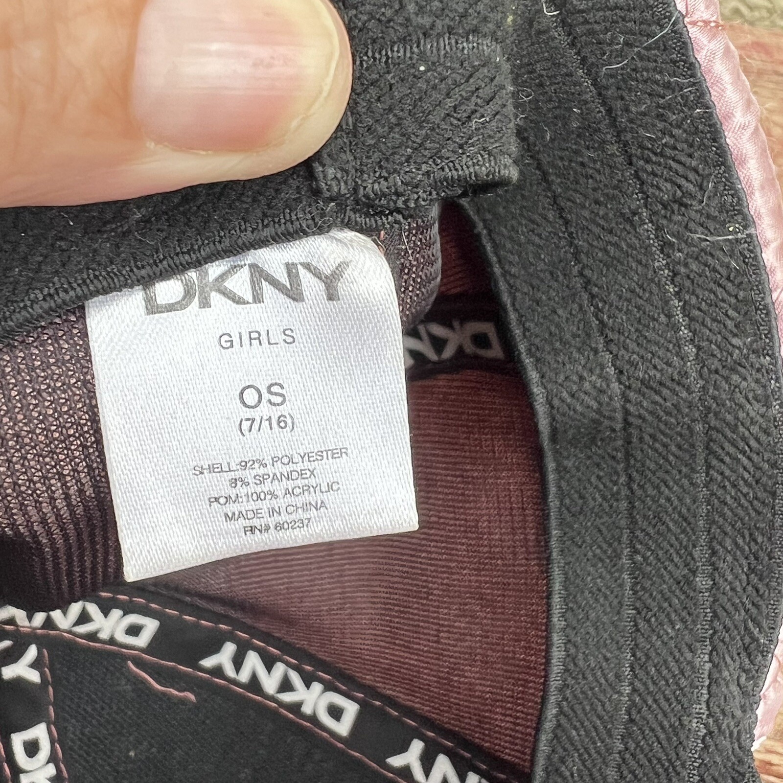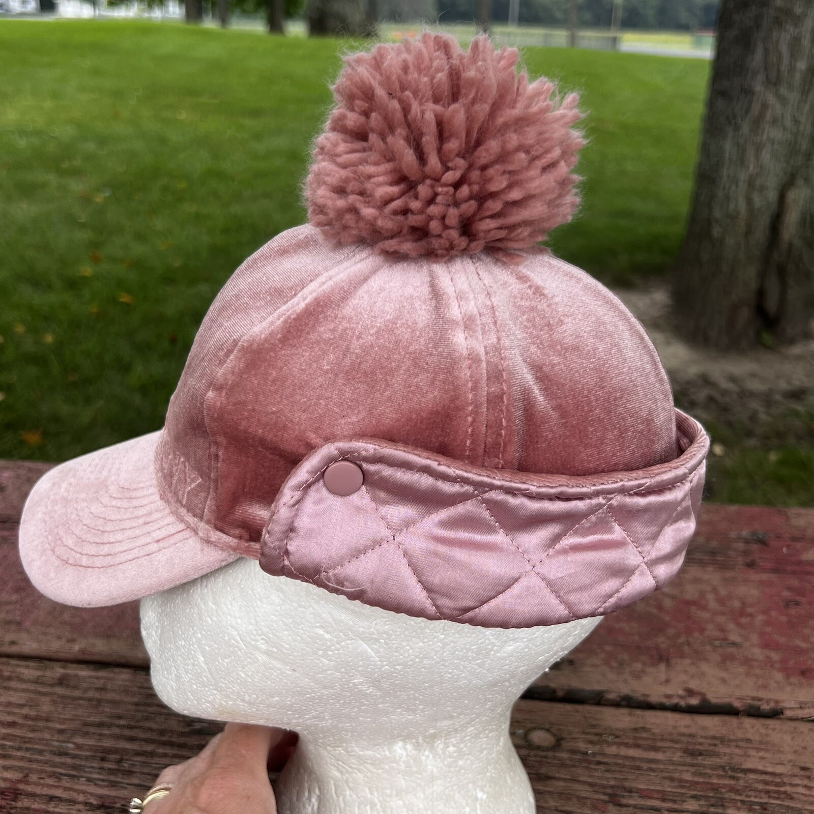 DKNY Rose PInk Velour Girls Youth Hat Cap w Tassle Ball Quilted Flap Snap Worn