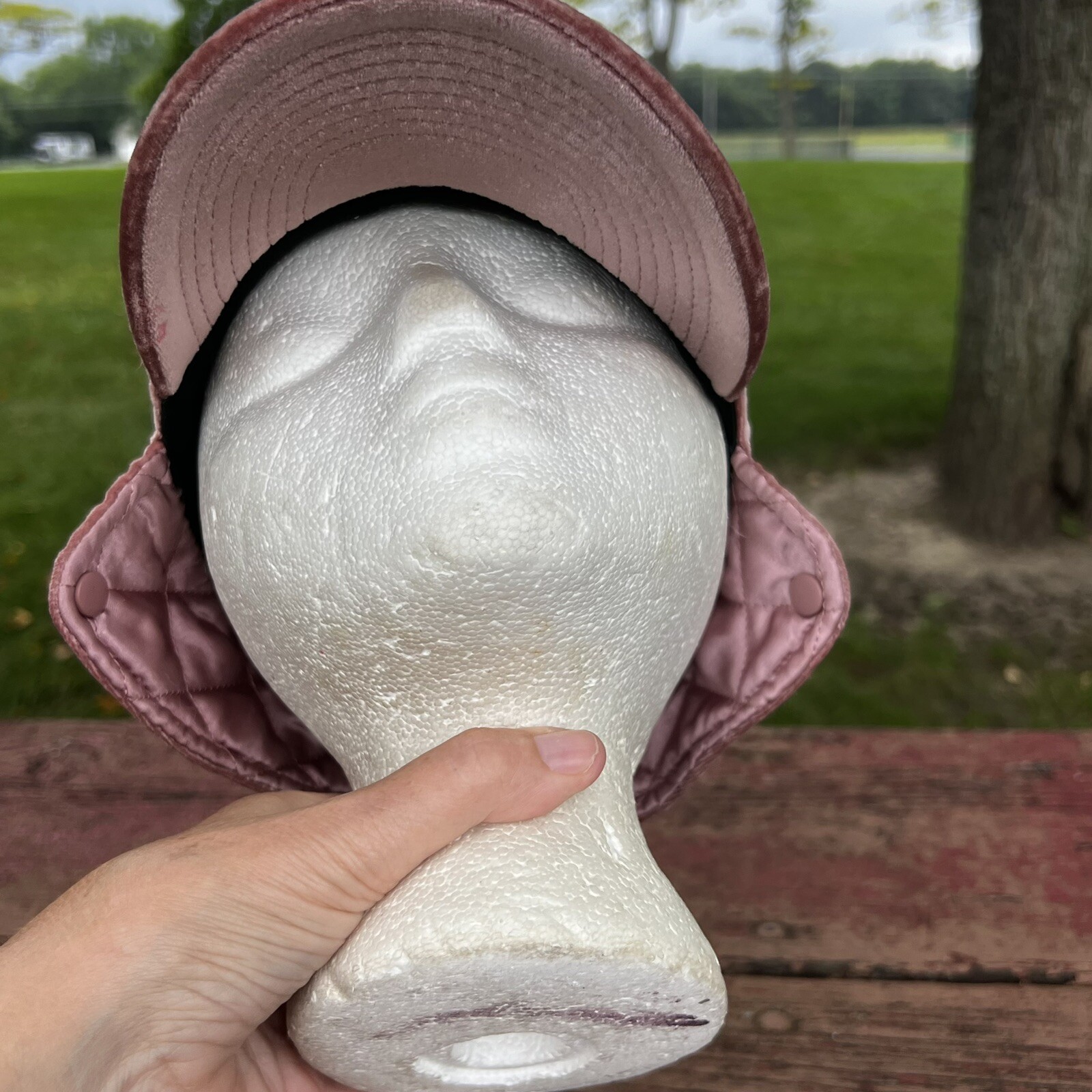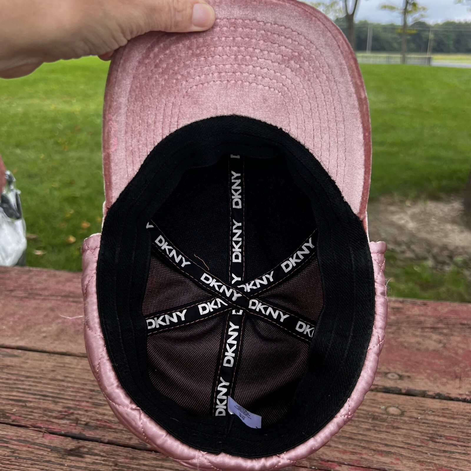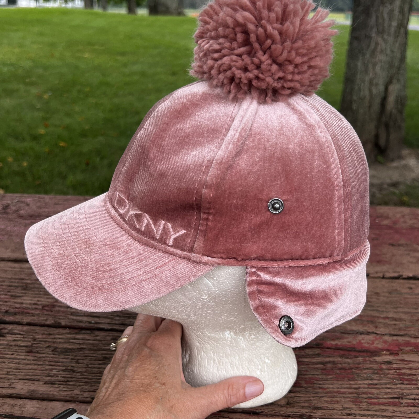 как выглядит DKNY Rose PInk Velour Girls Youth Hat Cap w Tassle Ball Quilted Flap Snap Worn фото