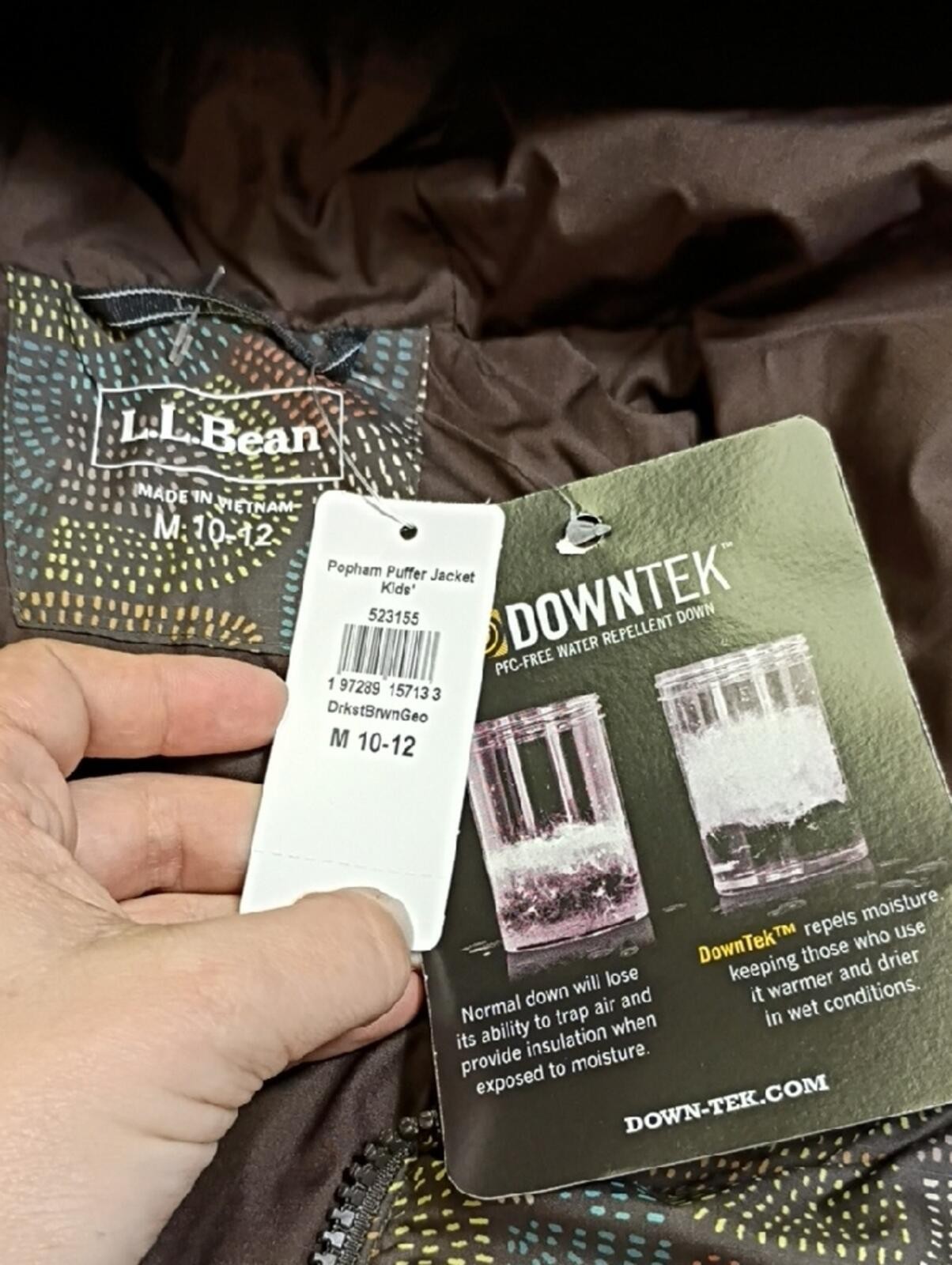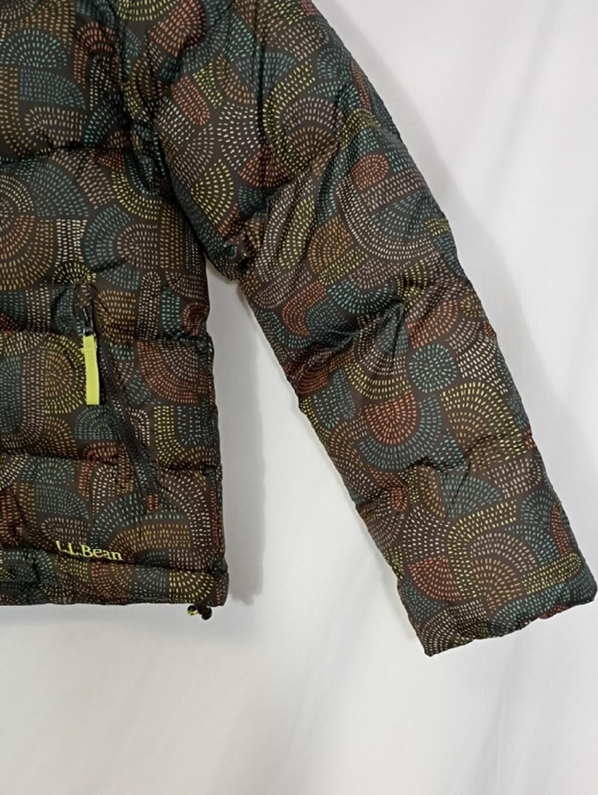 как выглядит NWT L.L. Bean Girls Darkest Brown Geo Popham Puffer Jacket Sz Med 10-12 Winter фото