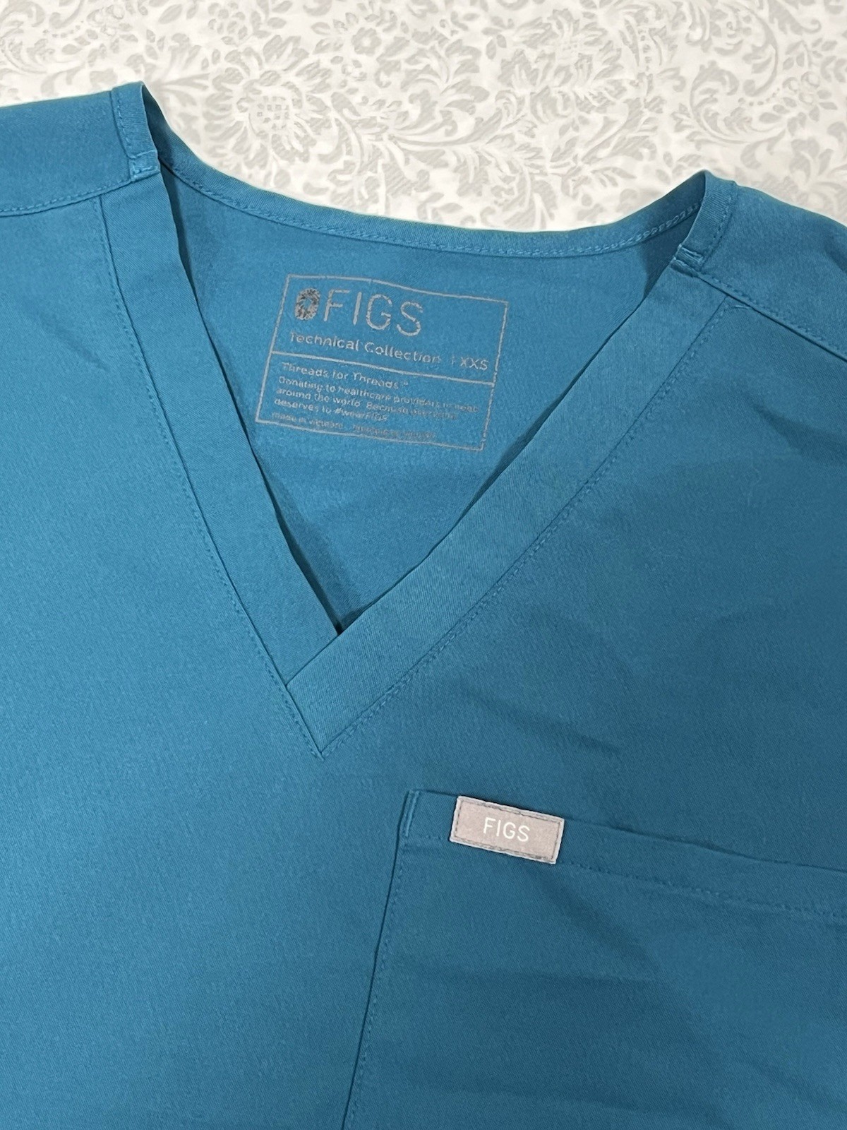как выглядит FIGS Catarina Scrub Top Womens XXS Blue Teal V-Neck 1 Pocket FW1000 фото