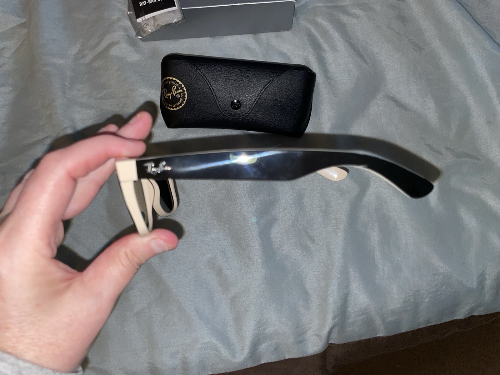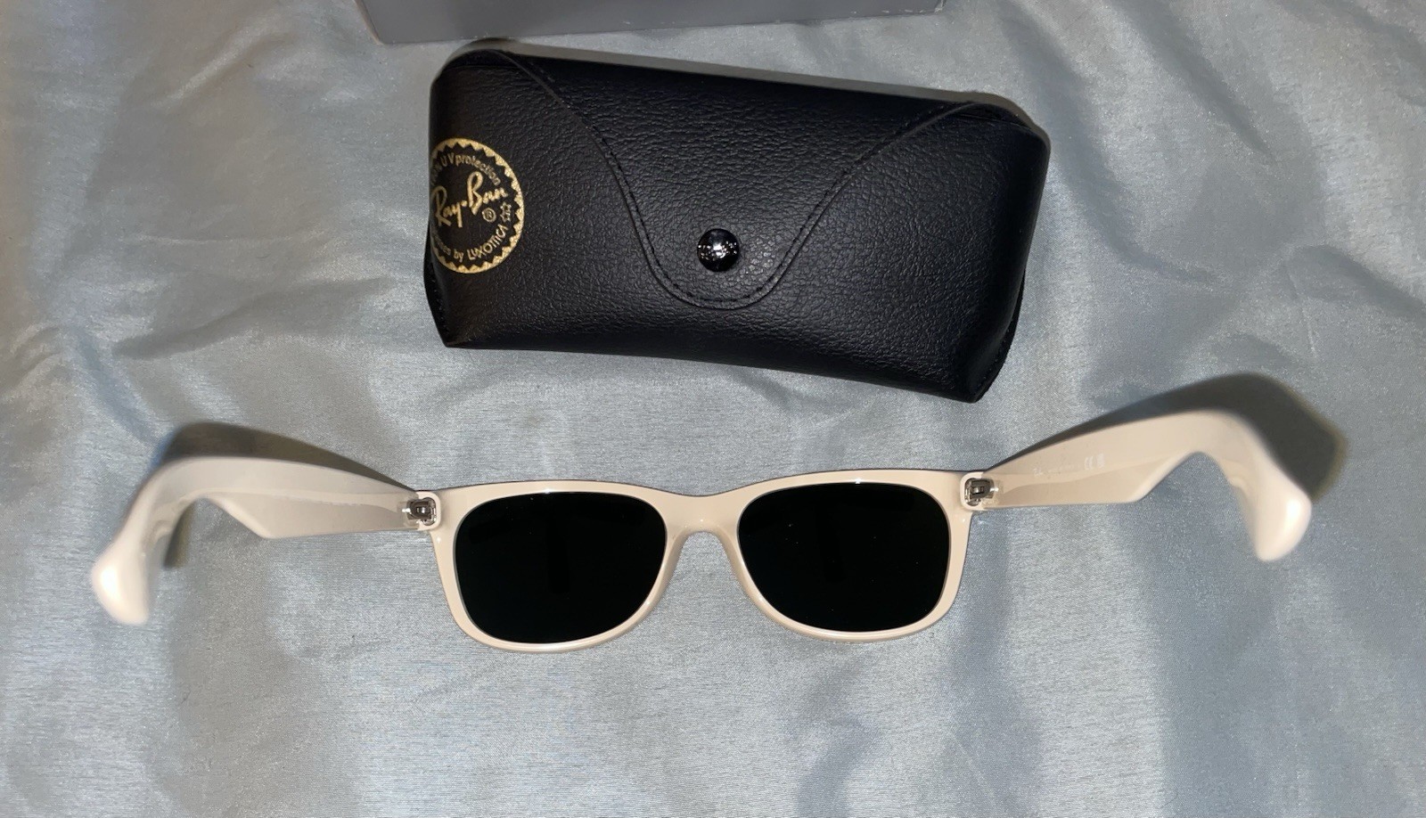 как выглядит Ray-Ban RB2132 New Wayfarer Classic Sunglasses - Black On Beige фото