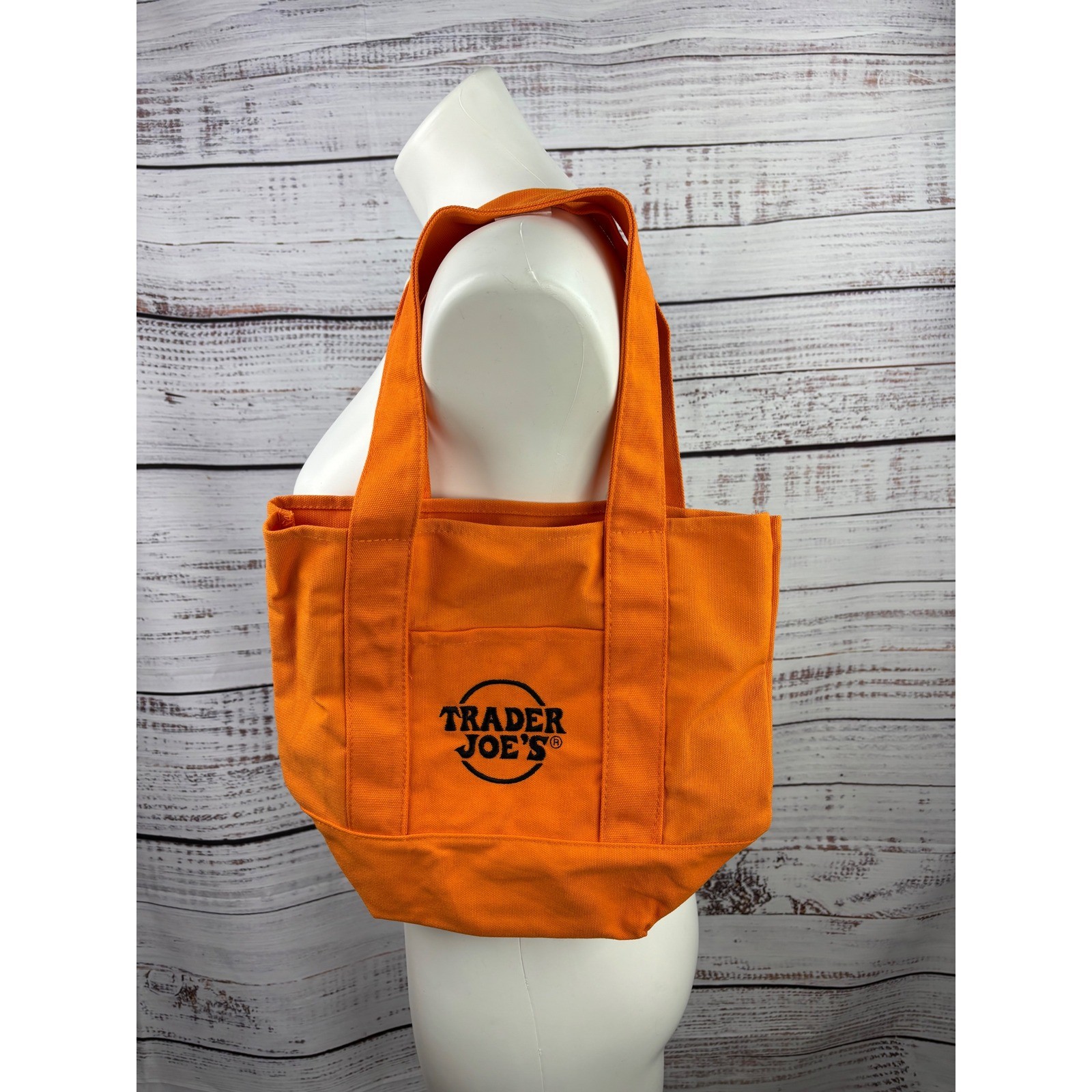 как выглядит Trader Joes Trick or Treat Canvas Tote Bag Orange Halloween Reusable Grocery фото