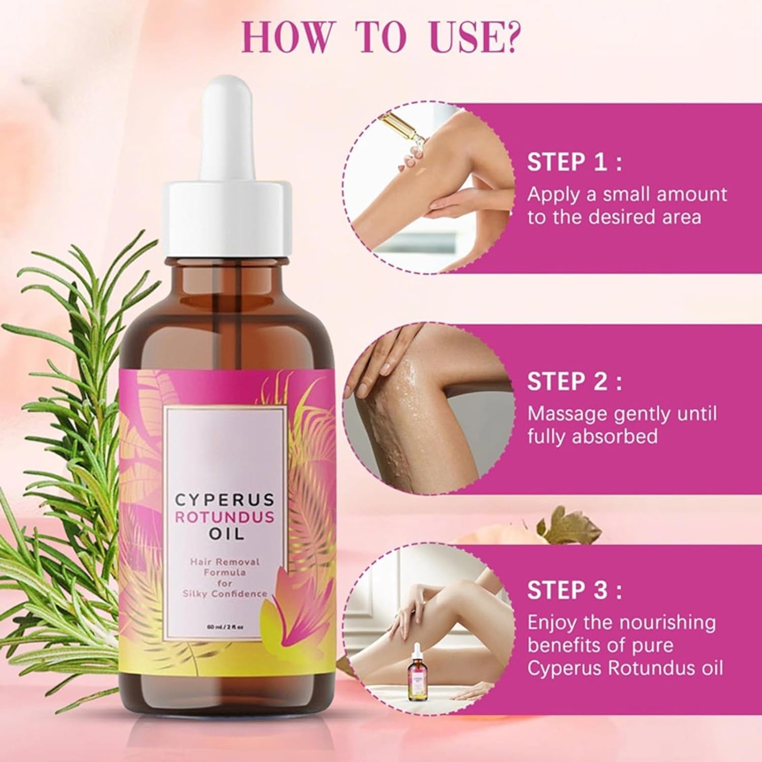 Cyperus Rotundus Oil - 60ml Natural Cyperus Rotundus Oil For Hair Removal, Mo...