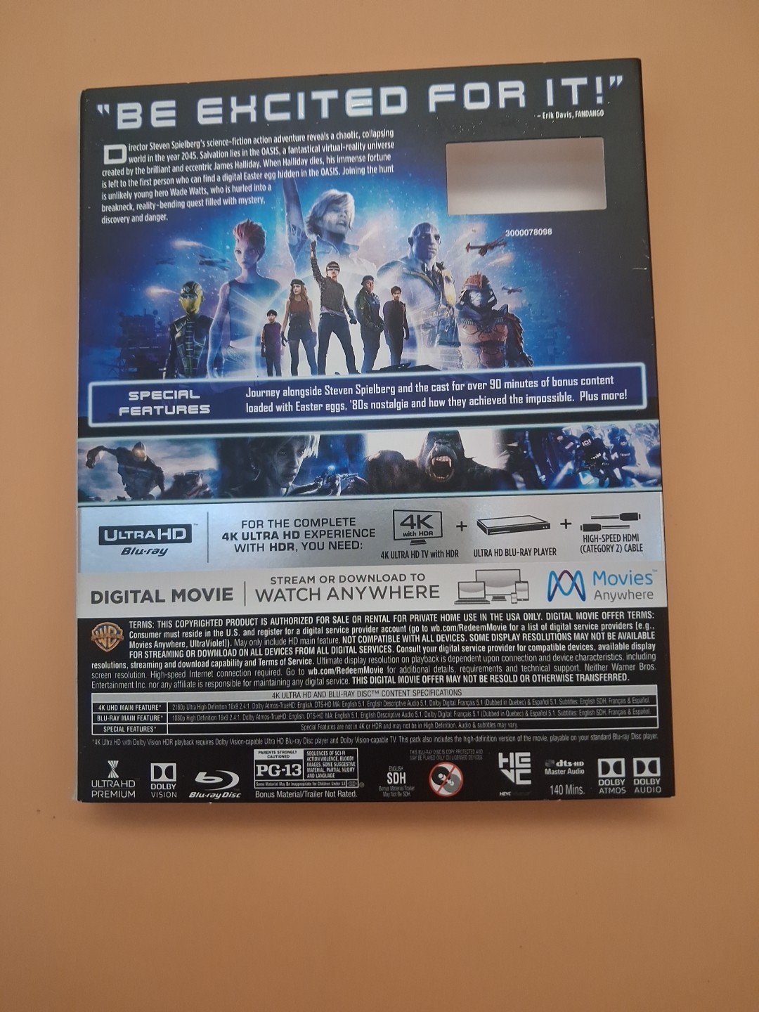 READY PLAYER ONE - W/ Slipcover 4K UHD BLU-RAY