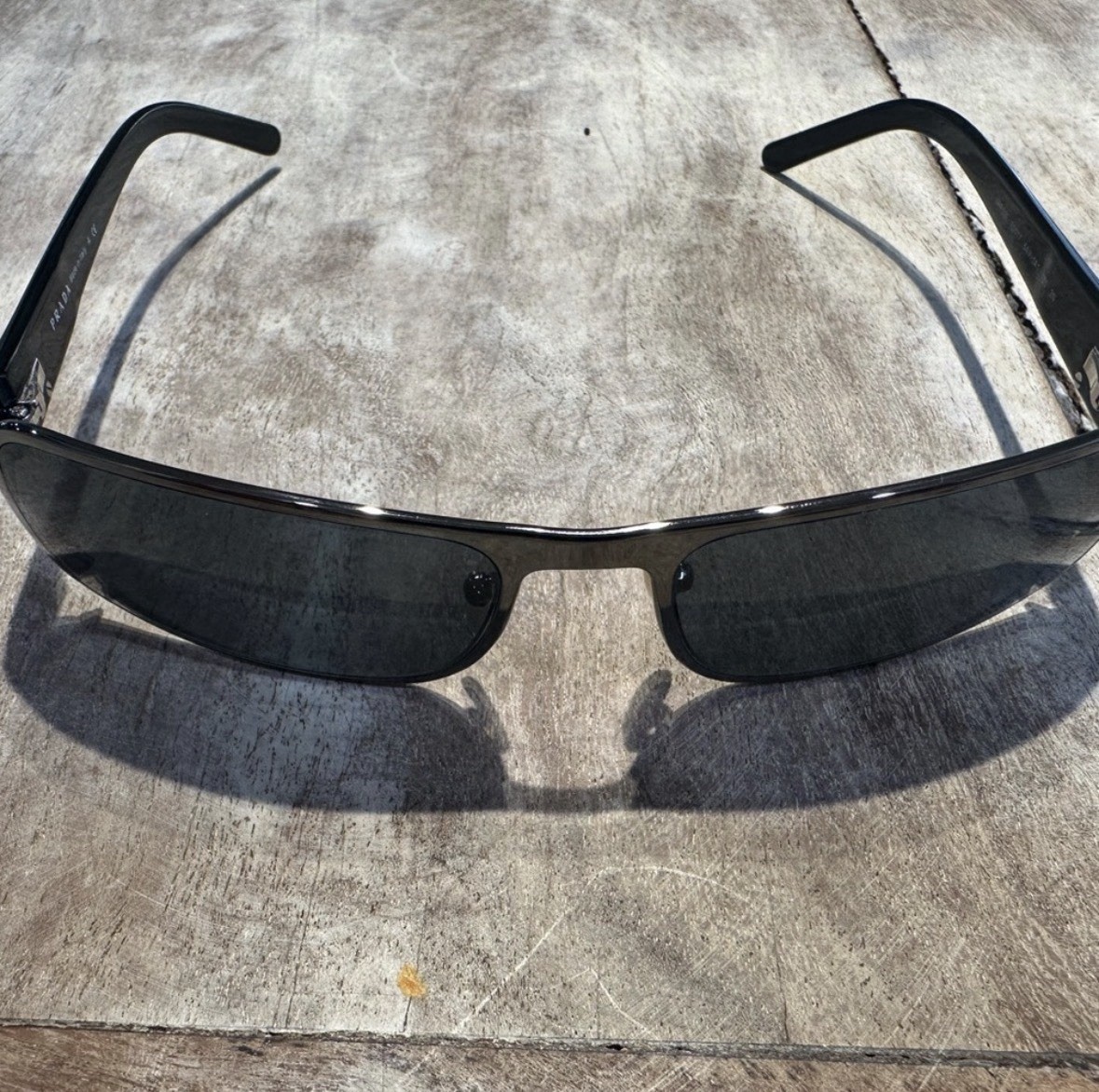 как выглядит PRADA Mens Rectangle Sunglasses Black Plastic Frame Gray Tinted Lenses фото