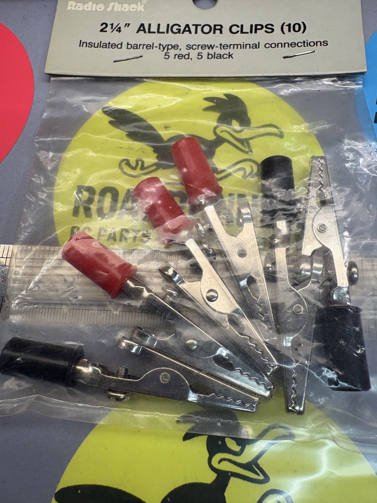RADIO SHACK 270-375C 2 1/4' ALIGATOR CLIPS / 6PC. / 3-RED / 3-BLACK / NEW