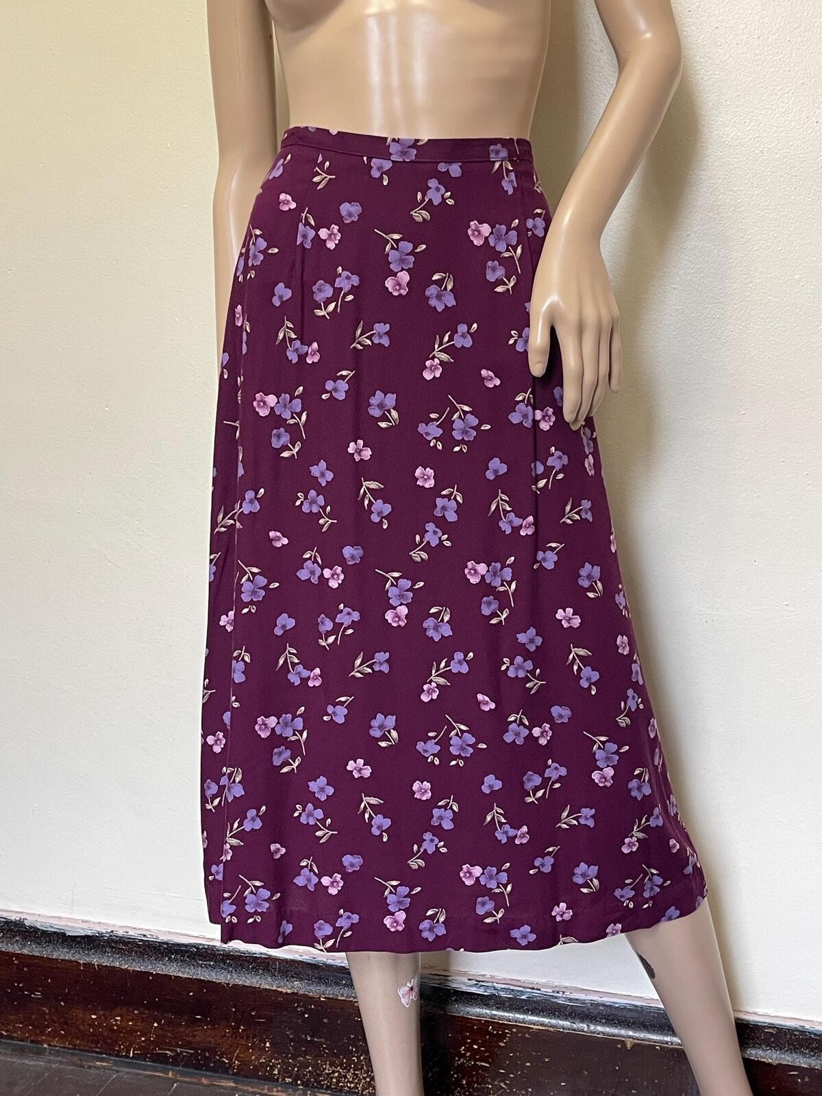 Vintage 90s Purple Floral Print High Waist Grunge Midi Skirt S