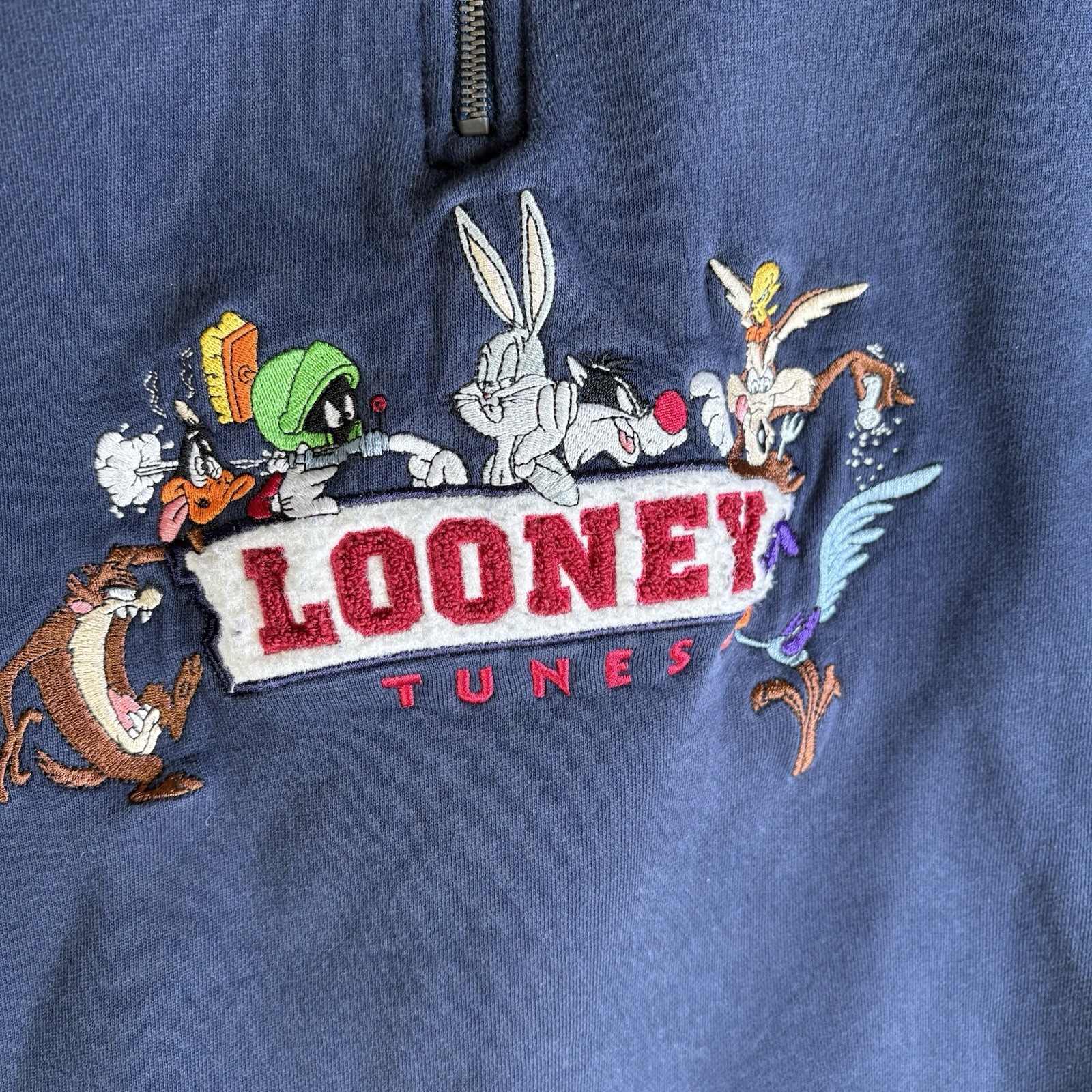 как выглядит Vintage Looney Tunes 1/4 Zip Sweatshirt Large Blue Warner Bros Studio Store фото