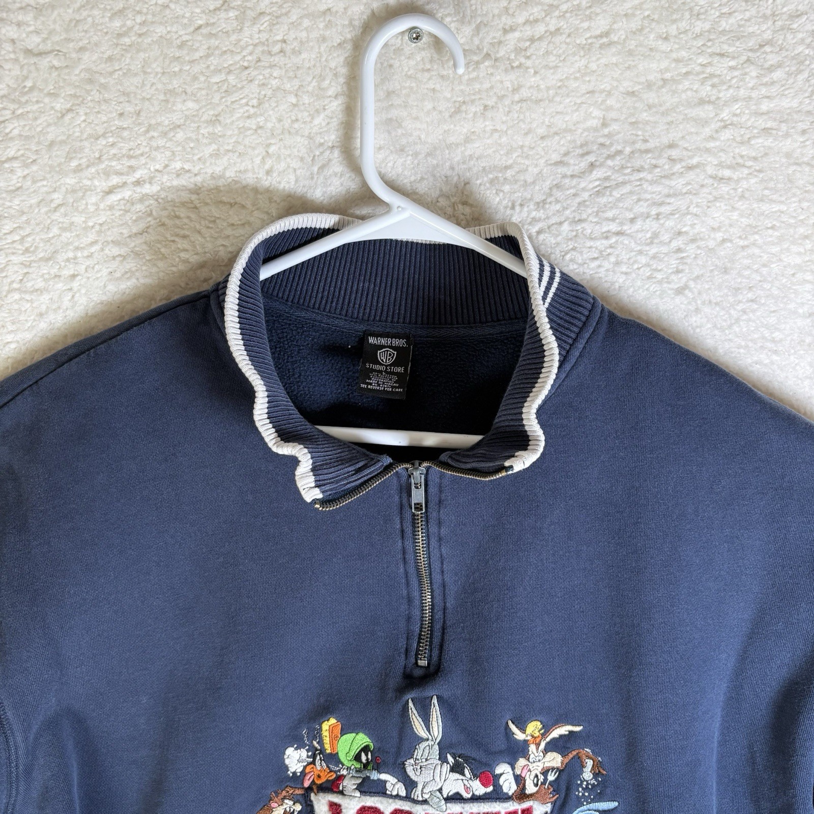 Vintage Looney Tunes 1/4 Zip Sweatshirt Large Blue Warner Bros Studio Store