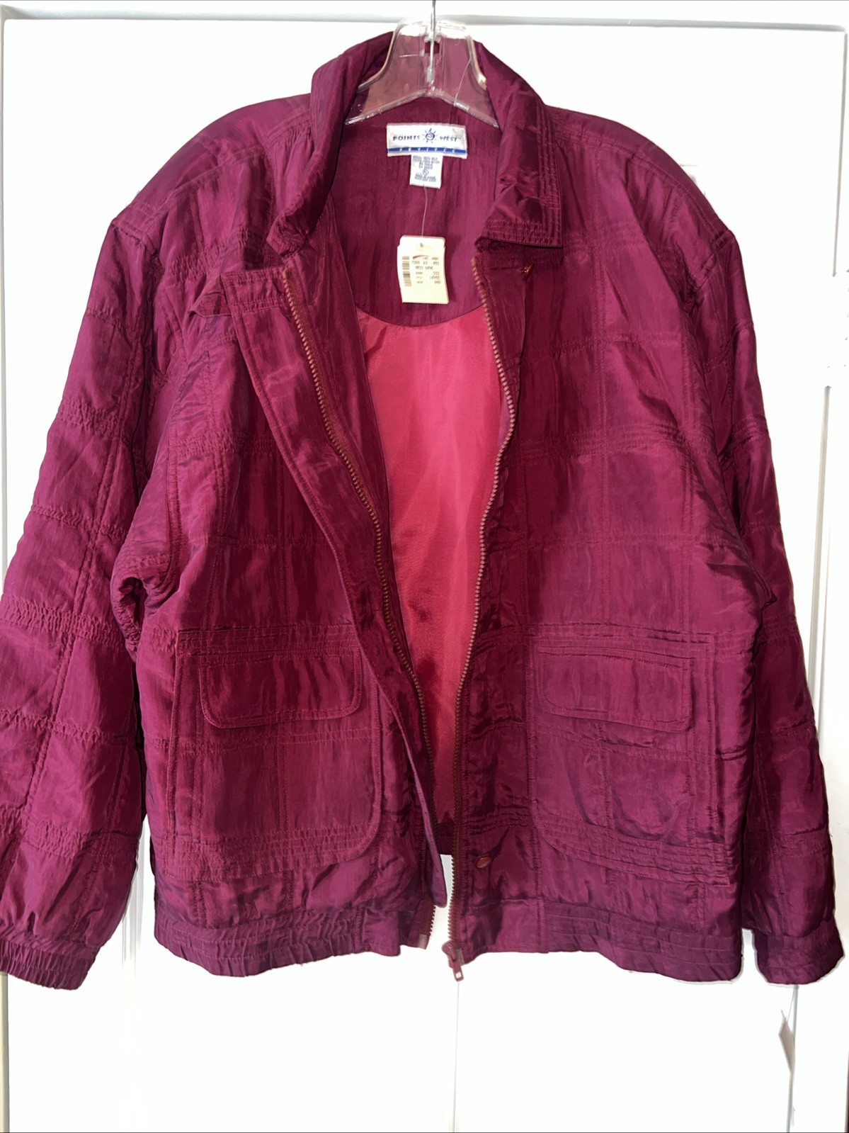Vintage 90s Retro Points West Windbreaker Jacket Silk Women s Sz PL Silky Red