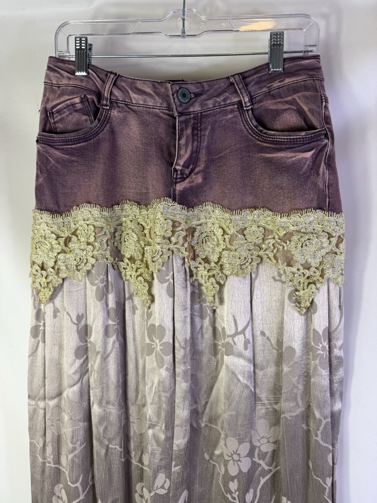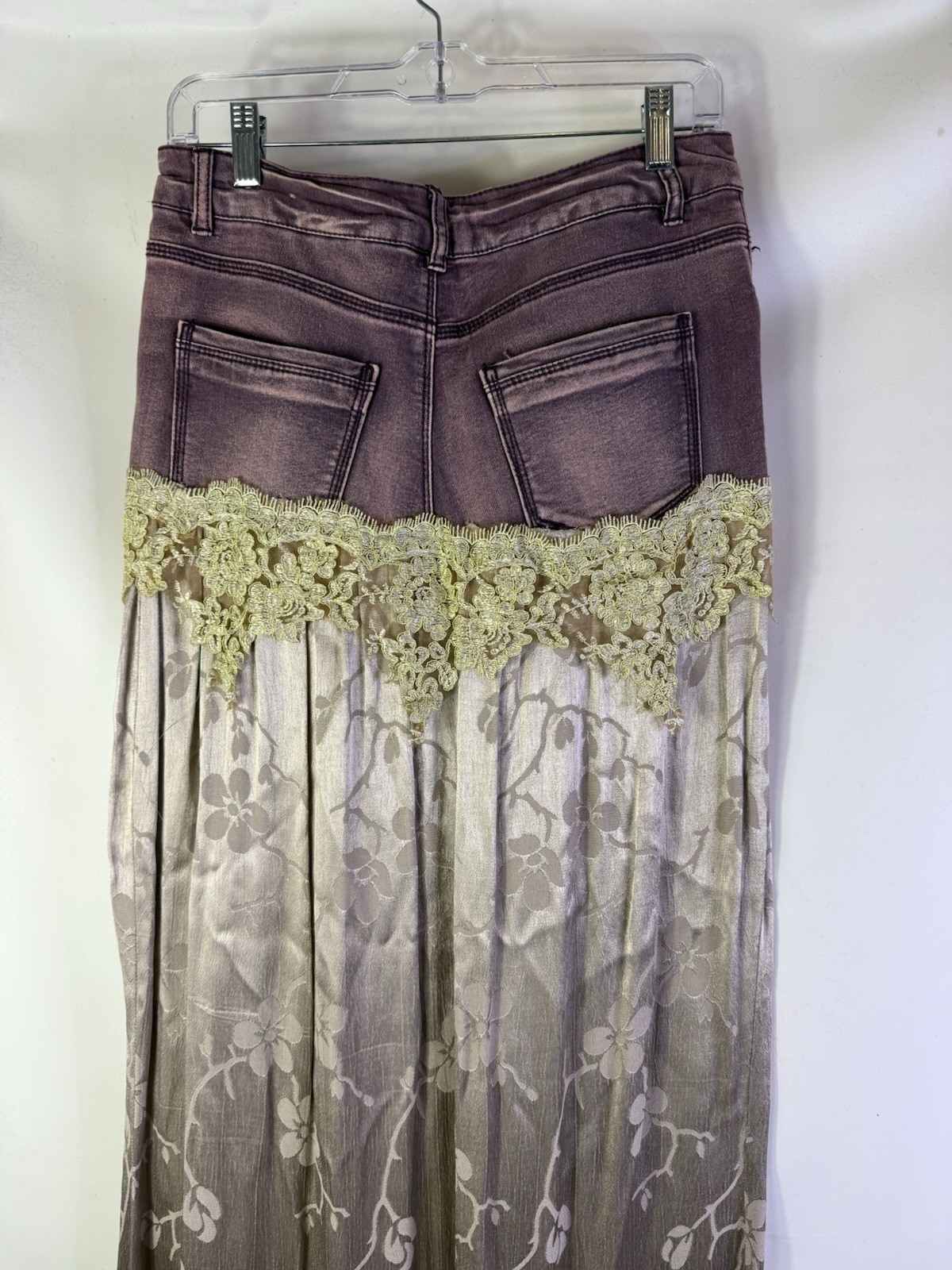 Vintage Y2K Fairy Goblin Satin Brocade Lace Tiered Maxi Skirt Handmade 7 / 8
