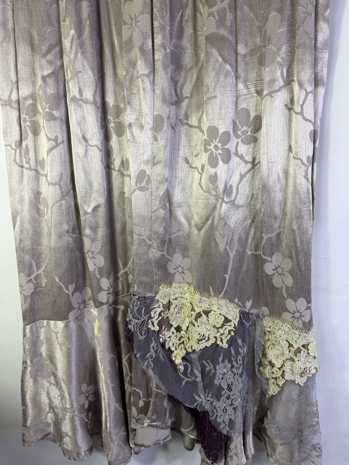 как выглядит Vintage Y2K Fairy Goblin Satin Brocade Lace Tiered Maxi Skirt Handmade 7 / 8 фото