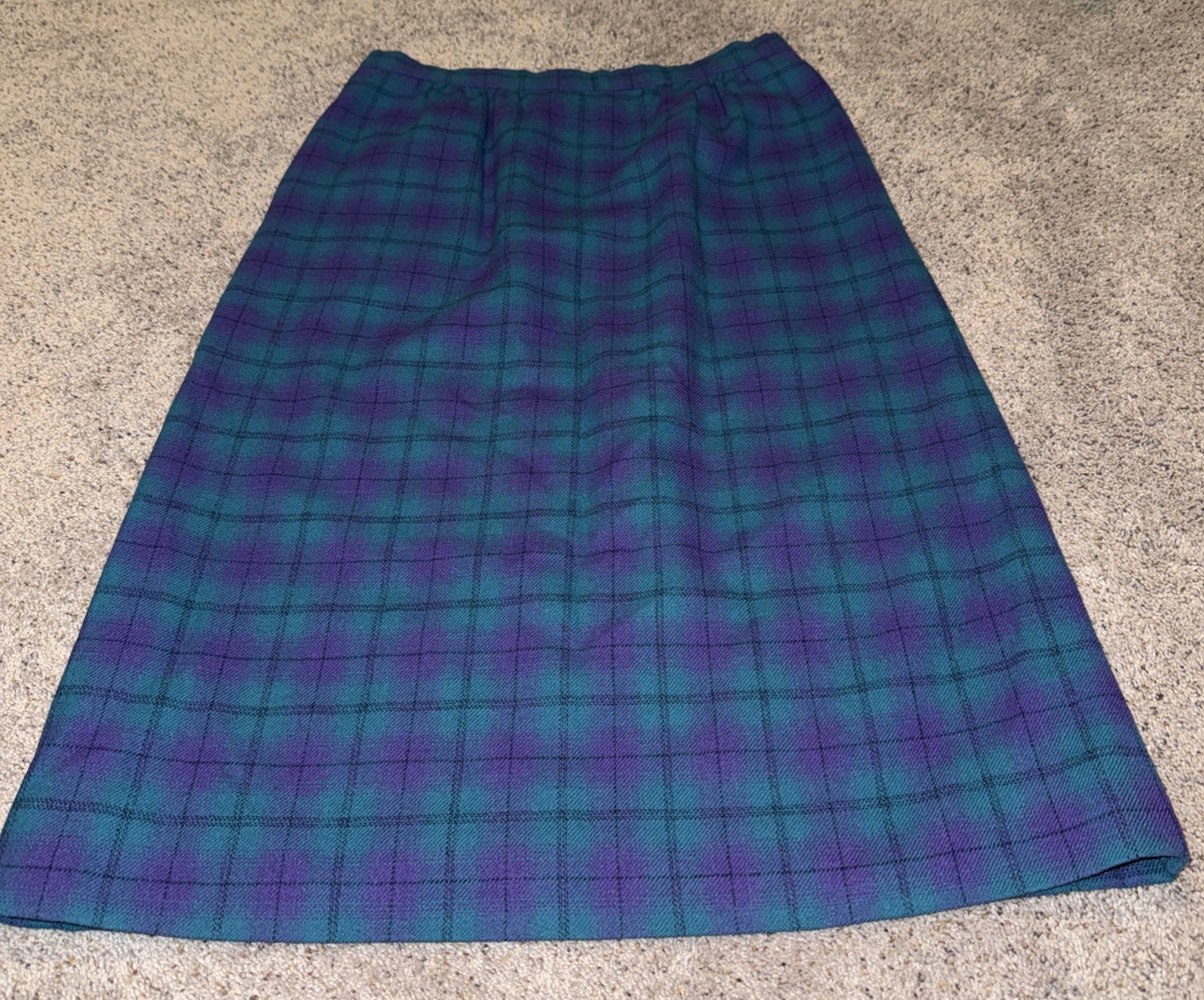 Vtg Pendleton Virgin Wool Skirt Midi Plaid Teal Purple Womens 10 Lined Pockets