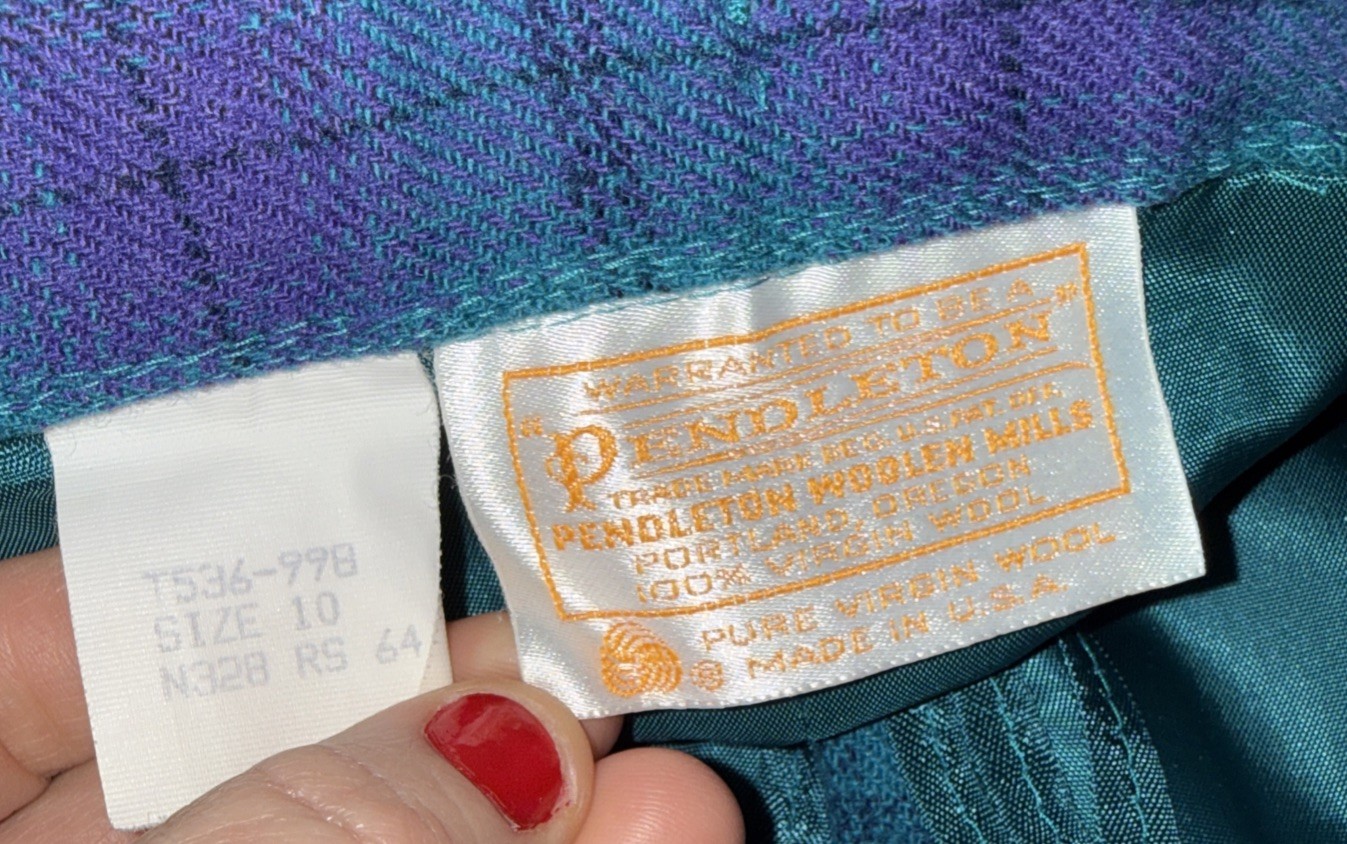 как выглядит Vtg Pendleton Virgin Wool Skirt Midi Plaid Teal Purple Womens 10 Lined Pockets фото
