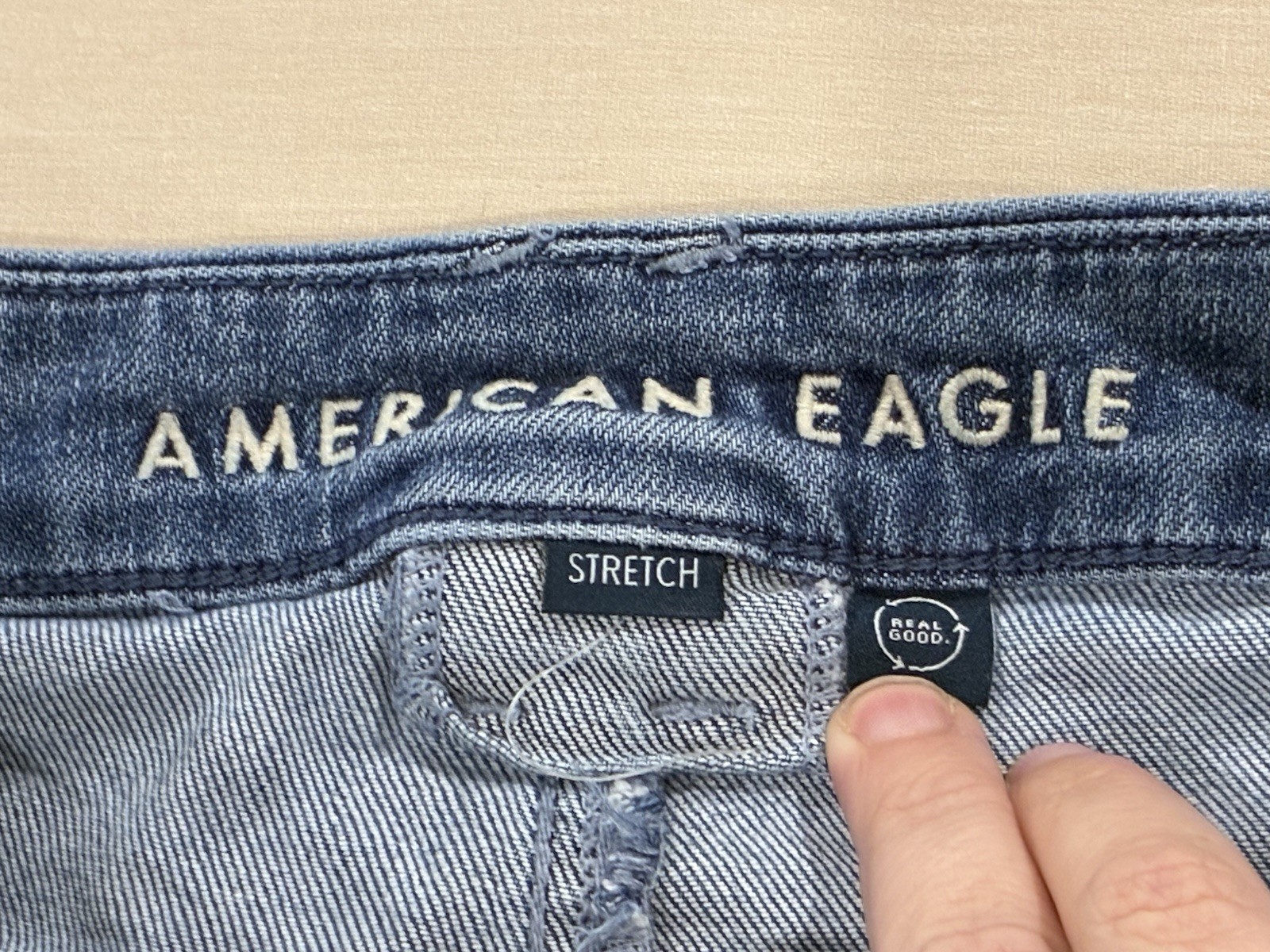 как выглядит AE Dreamy Drape Stretch Super High-Waisted Baggy Wide-Leg Jean Womens Size 4 фото