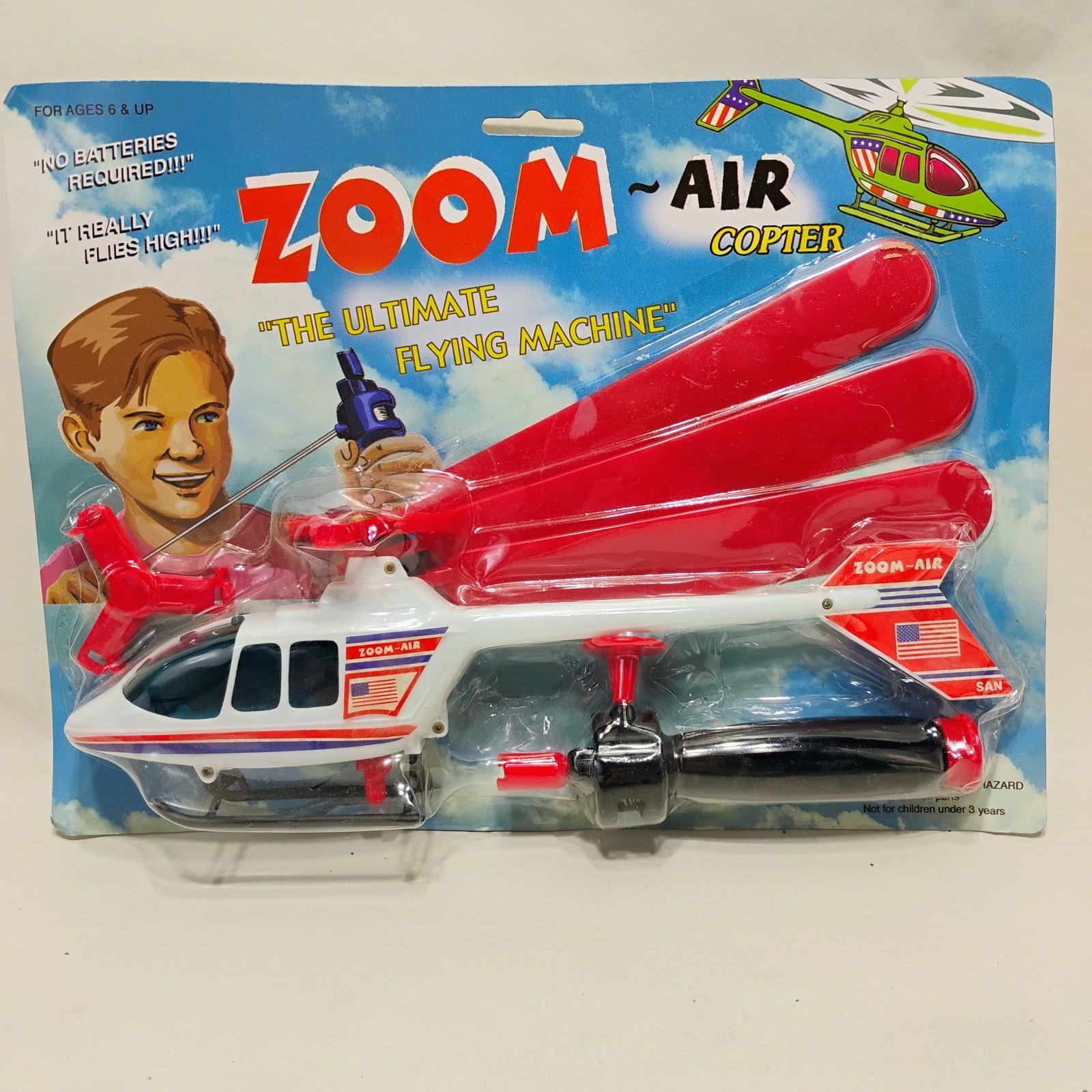 Helicopter Zoom Copter Toy Flies Over 100 FT. No Batteries Needed New In Package