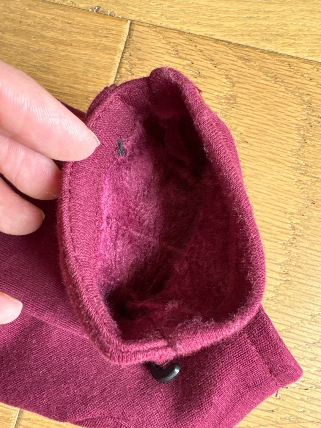 как выглядит Womens Burgundy Fleece Lined Touchscreen Gloves with 3-Button Detail фото