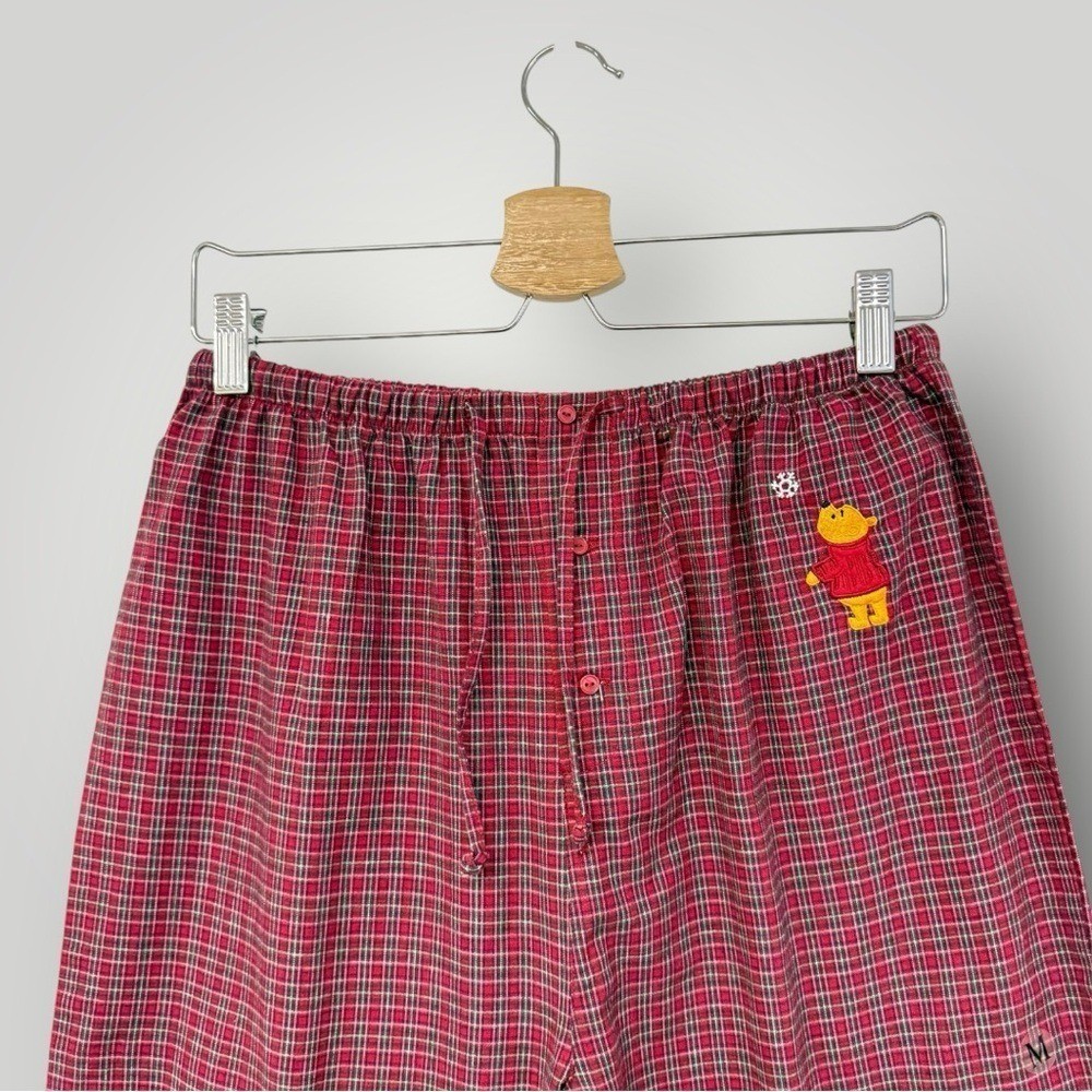 как выглядит Disney Winnie The Pooh Maroon Button Up Long Sleeve Shirt Pants Pajama Set Sz M фото