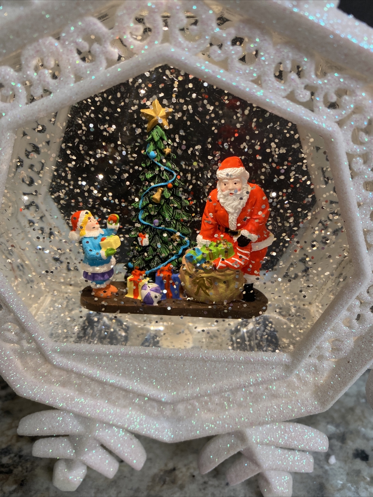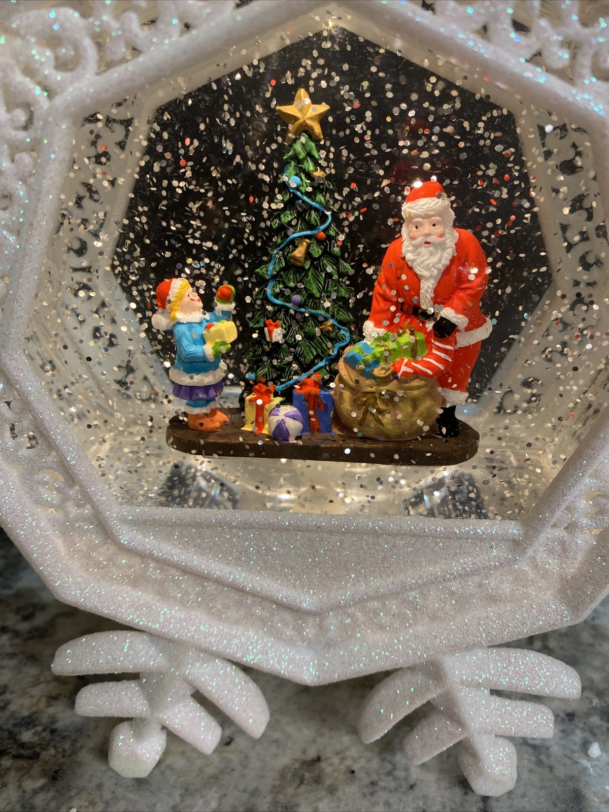 Christmas Snow Water Globe SWIRLING Lighted 9 W8 Santa Snowflake Tree Present