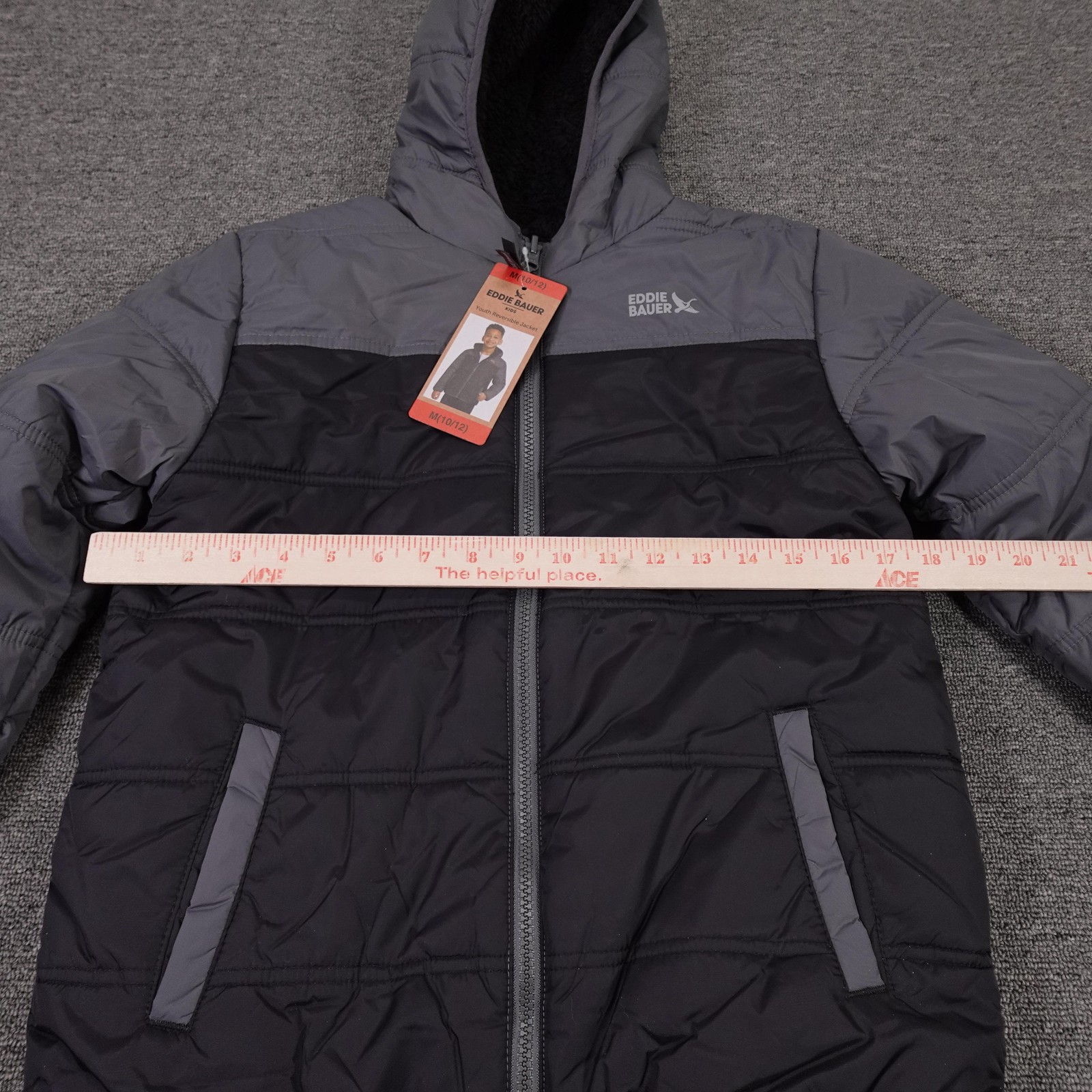 как выглядит Eddie Bauer Jacket Youth Medium 10-12 Black Reversible Hooded Puffer Winter фото