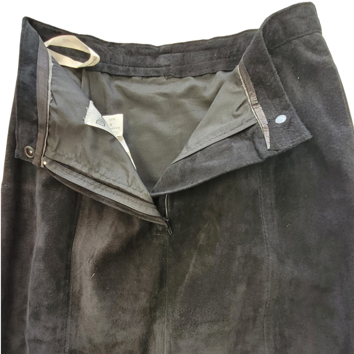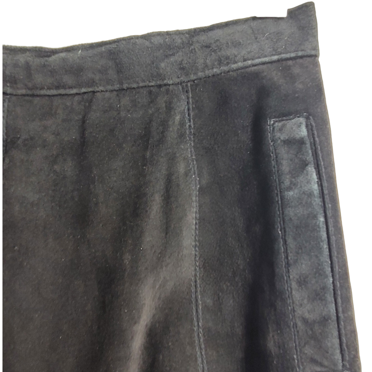 как выглядит Bianca Vintage Leather Suede Pockets Back Slit zip Modest Straight Midi Skirt фото