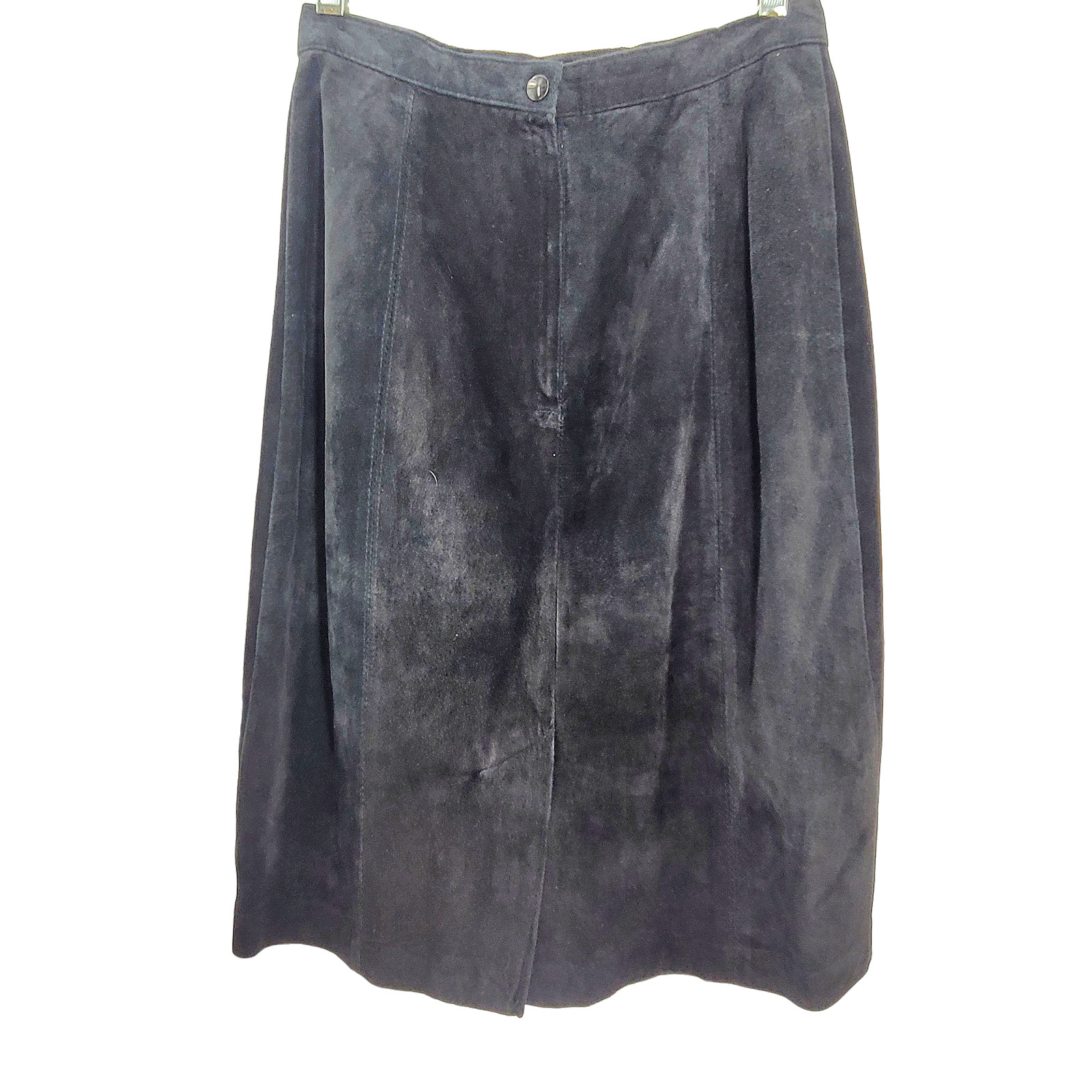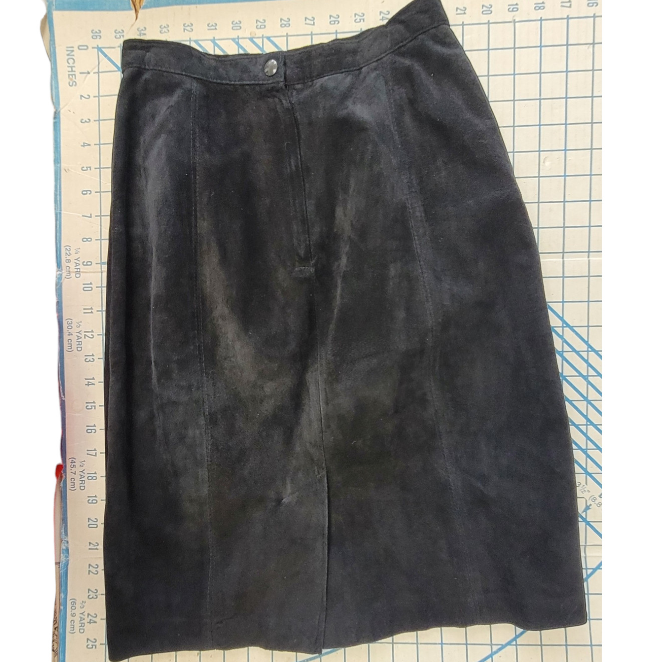 Bianca Vintage Leather Suede Pockets Back Slit zip Modest Straight Midi Skirt