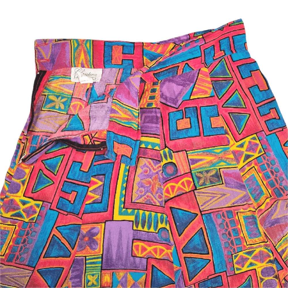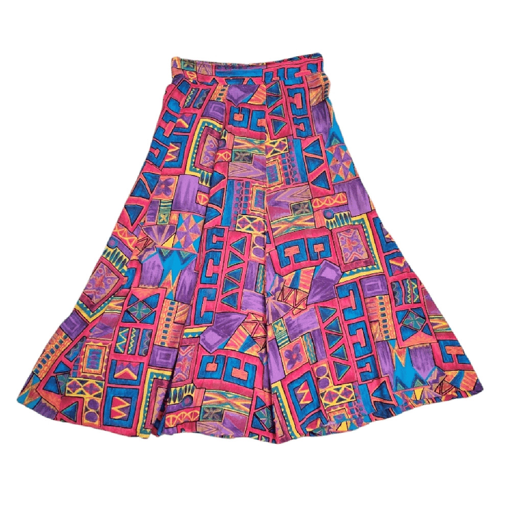 VTG 80s Colorful Abstract Print High Rise ALine Midi Skirt Large Fits like Med