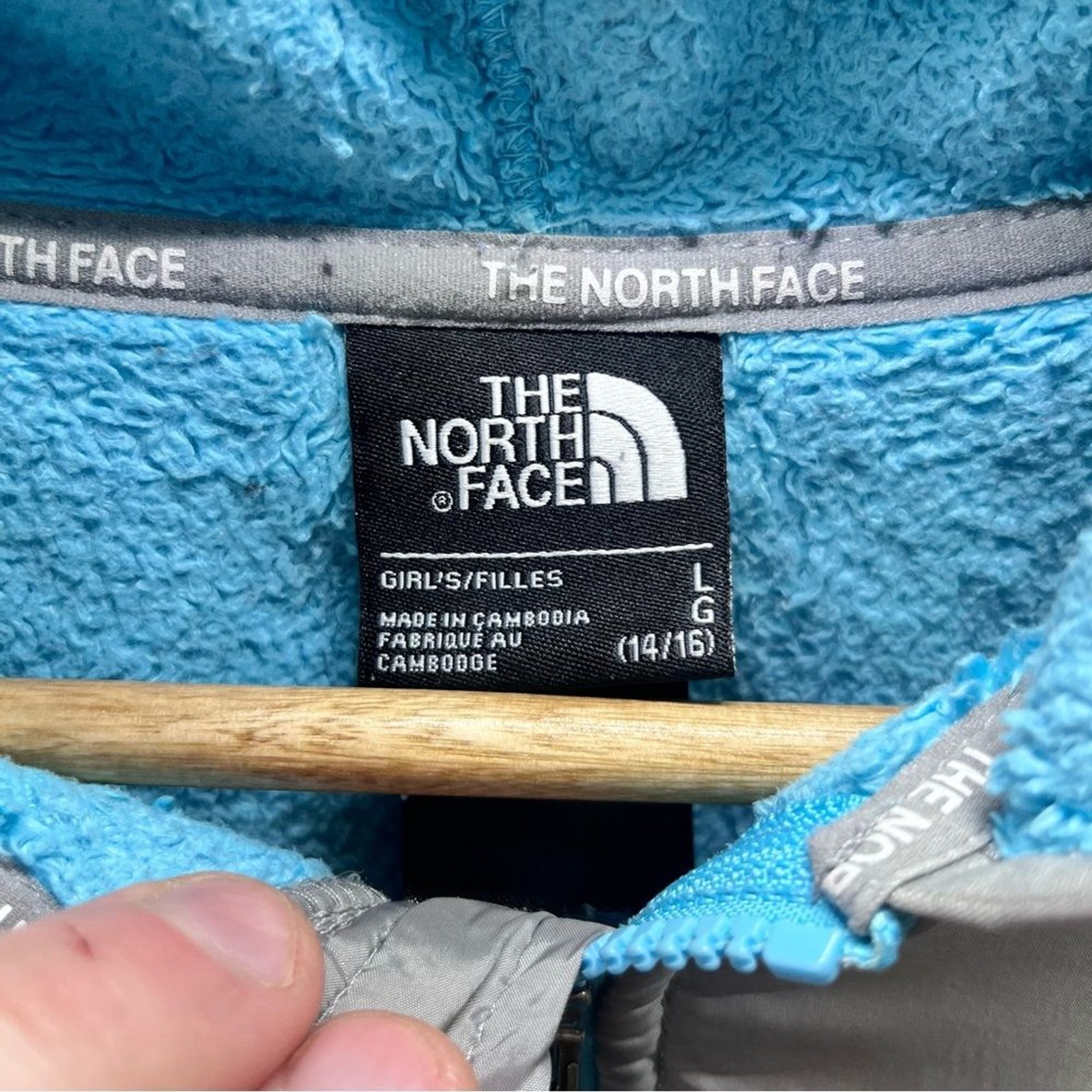 The North Face Denali Hooded Fleece Jacket Girls L 14-16 Aqua Coat 2913