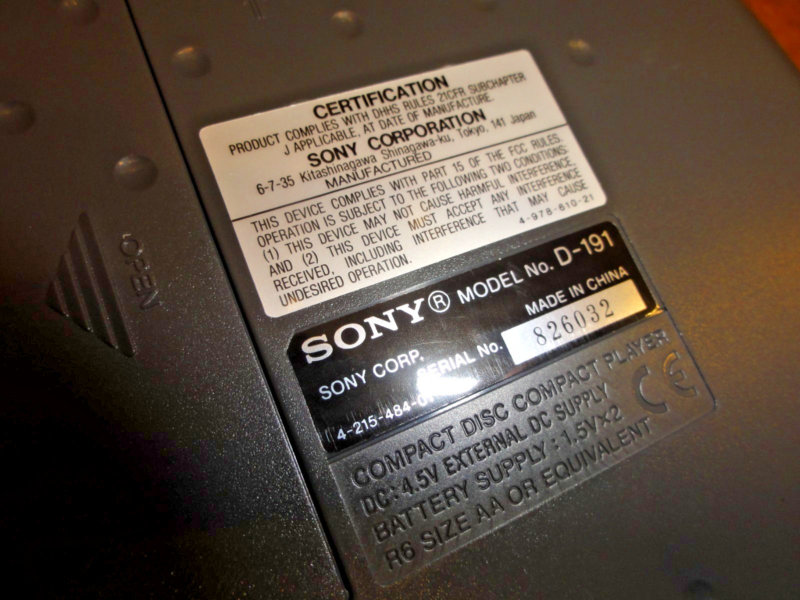 Sony D-191 Discman Portable CD Player Mega Bass Working Vintage