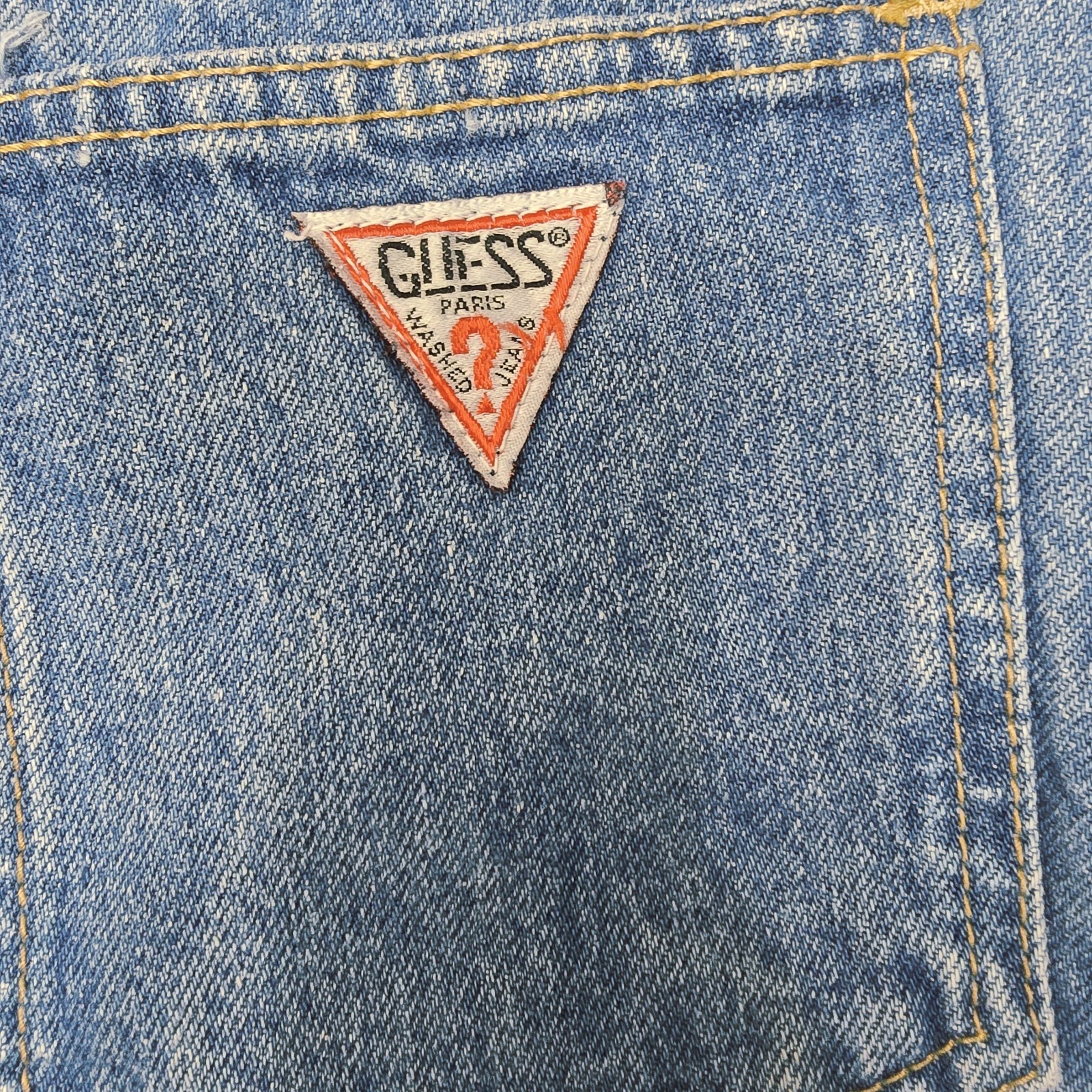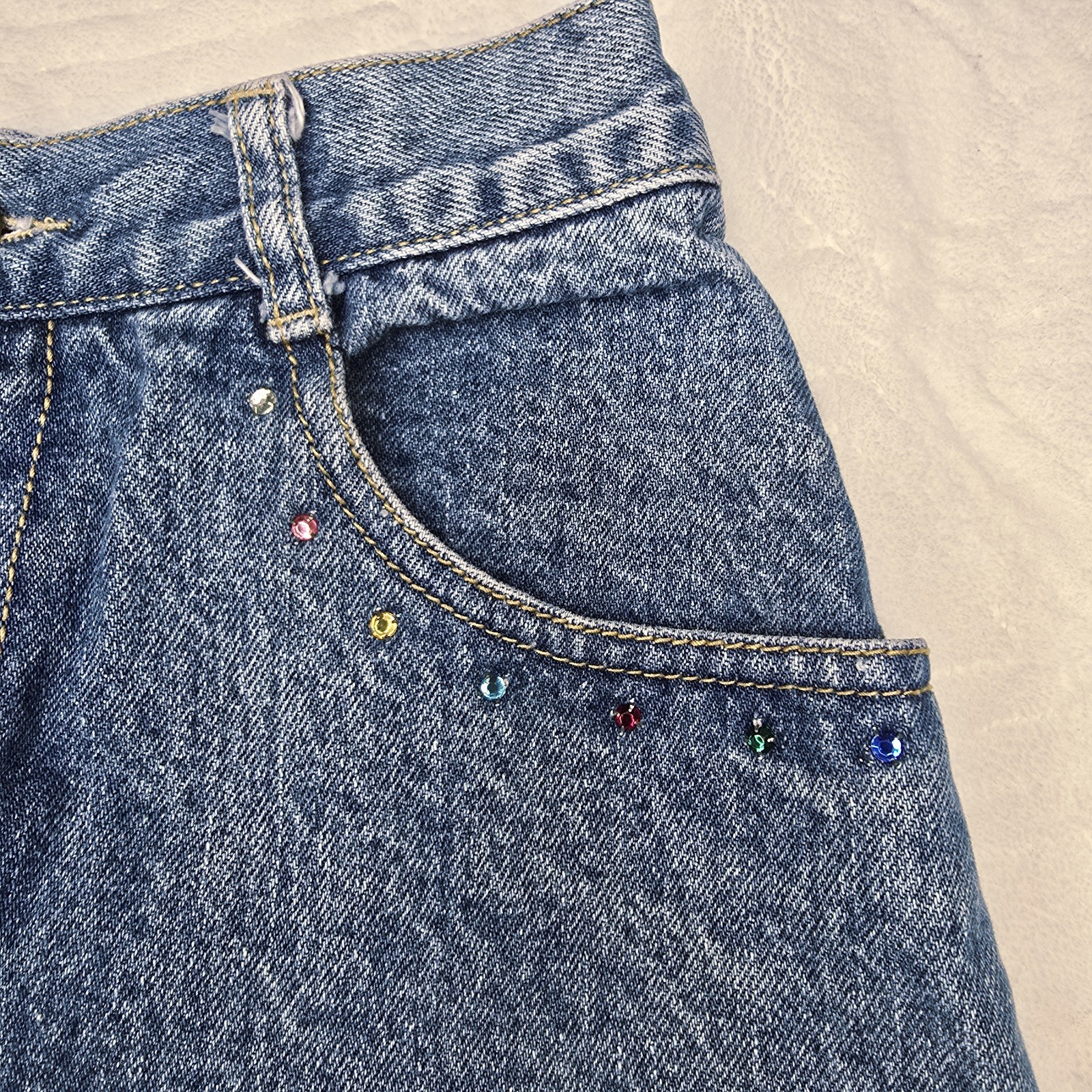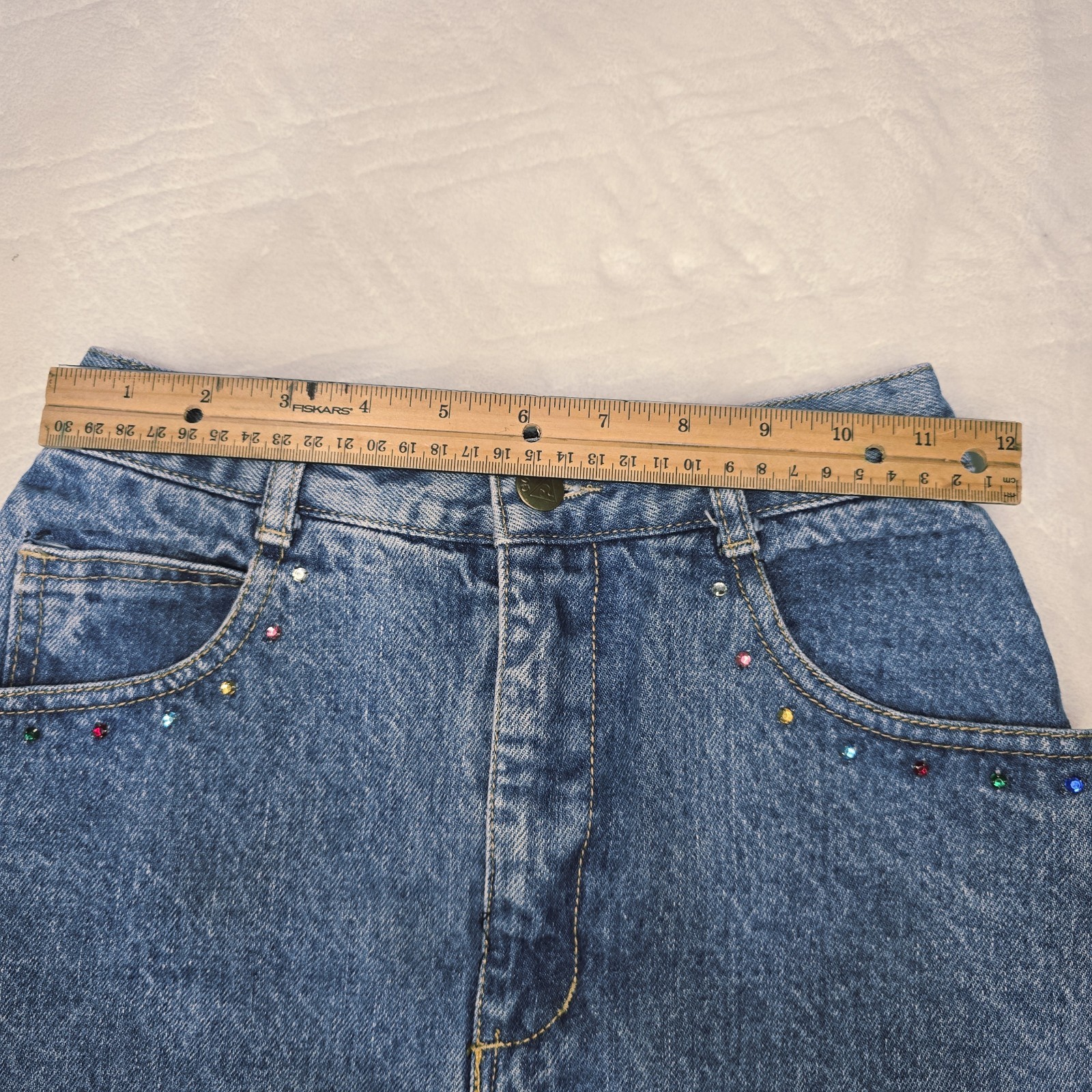 как выглядит VTG 80s Georges Marciano GUESS Denim Skirt 26 High Waist Rhinestone Pocket USA фото