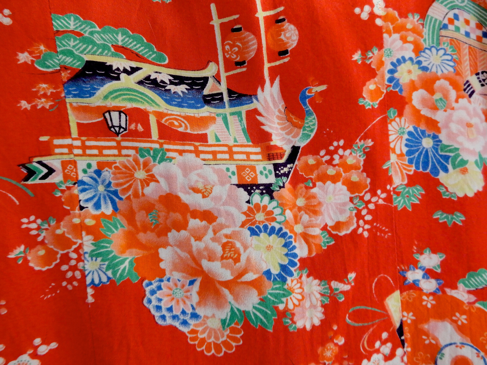 • Vintage JAPANESE Oriental Style Shirt KIMONO Pattern Knot Button READ SEE