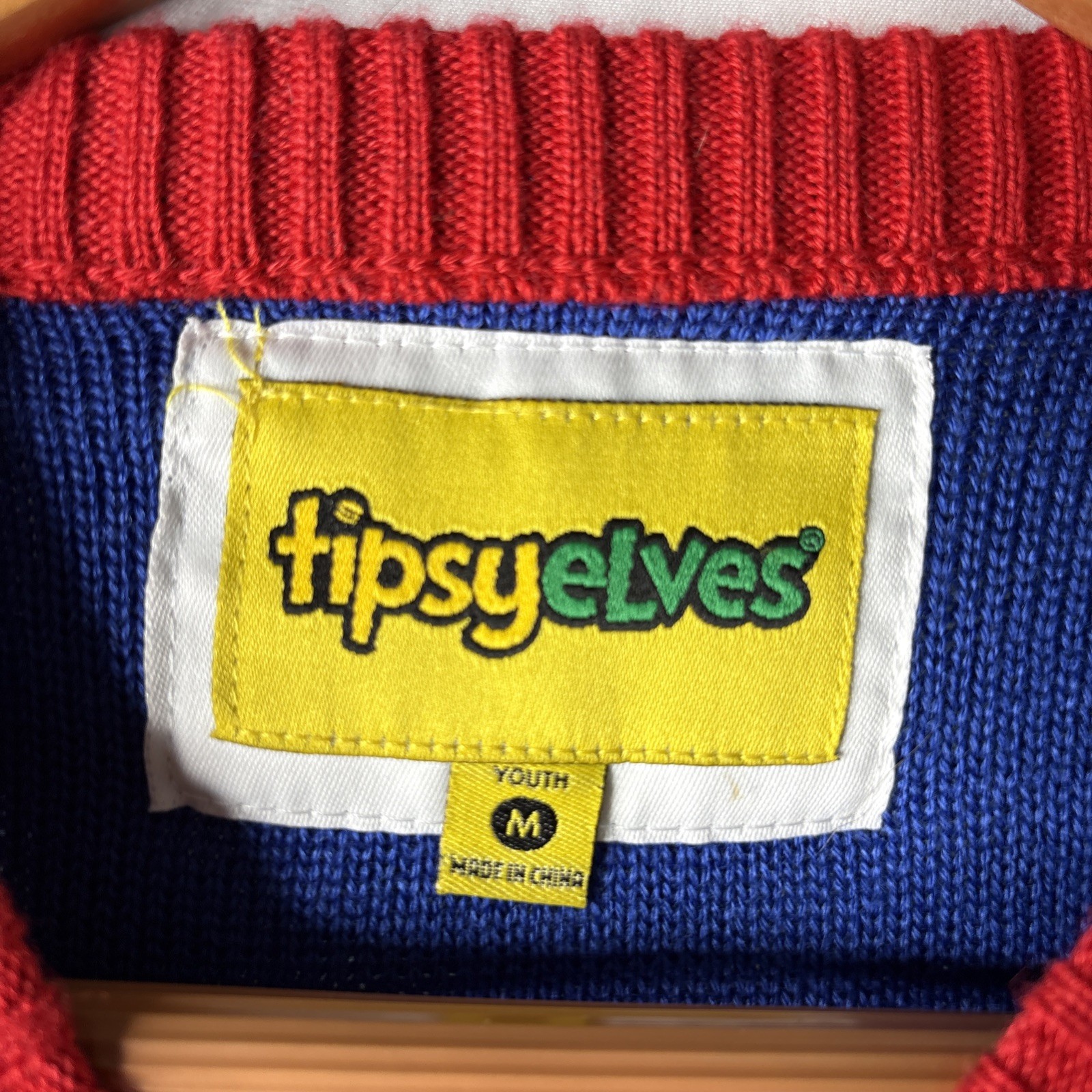 Tipsy Elves Youth M Ugly Christmas Sweater Xmas Tree Tinsel Holiday Colorful