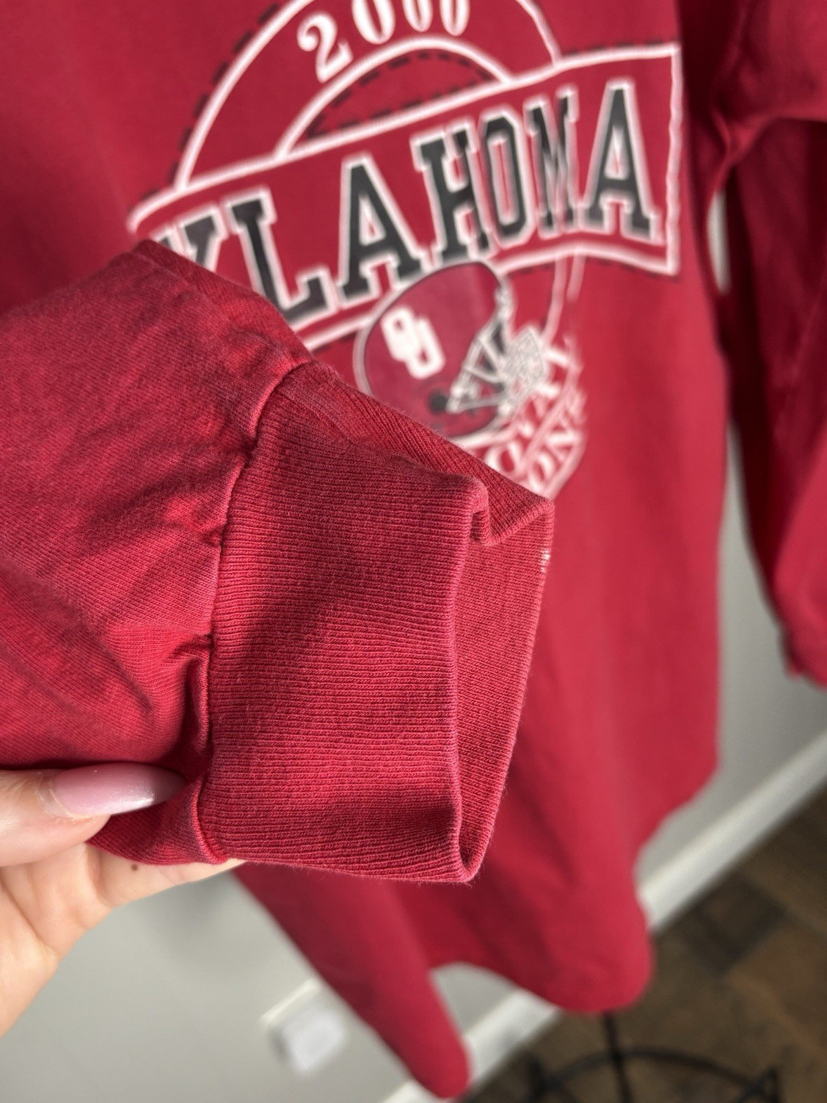 как выглядит Vintage XL Oklahoma Sooners 2000 National Champions Football Long Sleeve Shirt фото