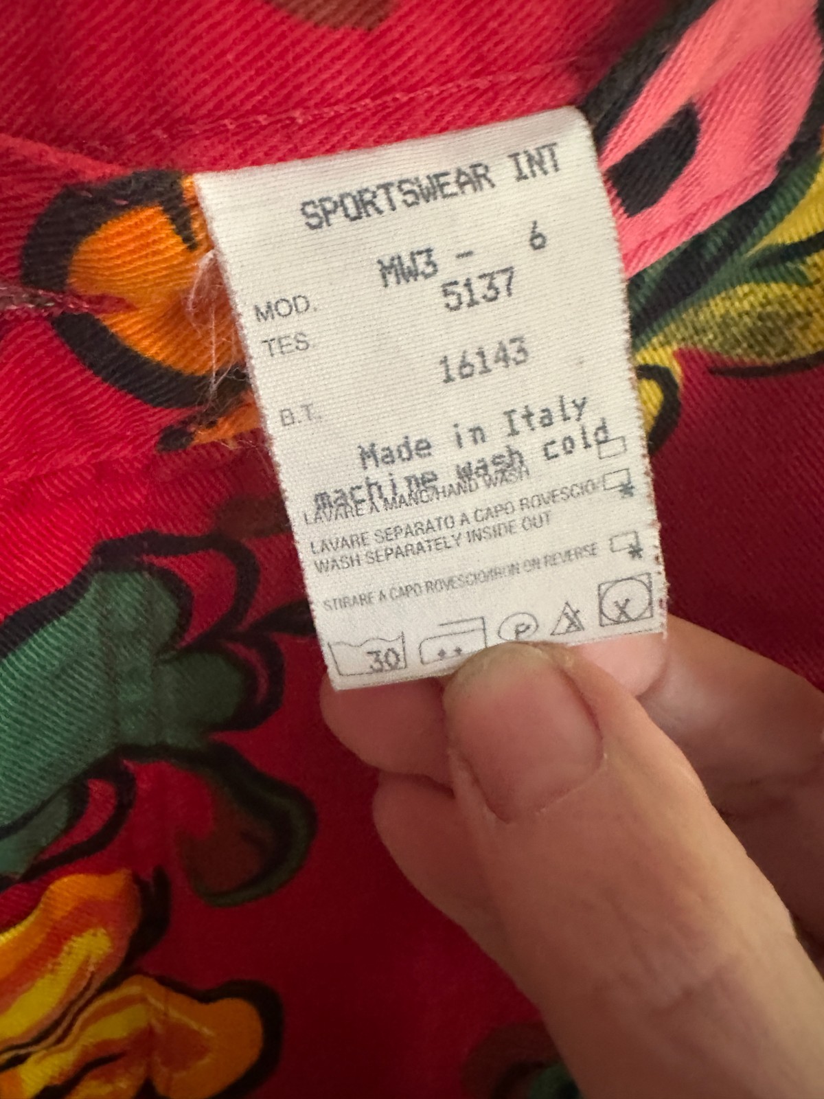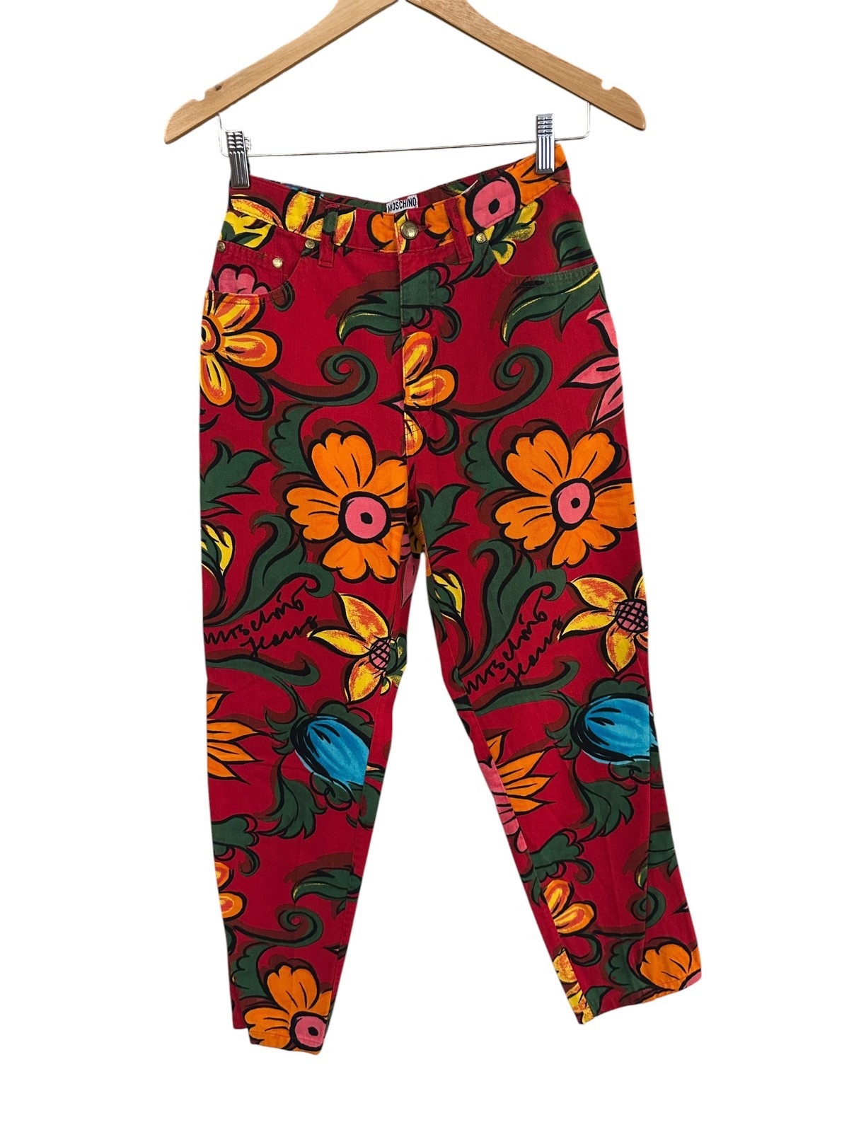 Moschino Jeans Floral Pants 90s Vintage Size 29 Red Print Rare Statement
