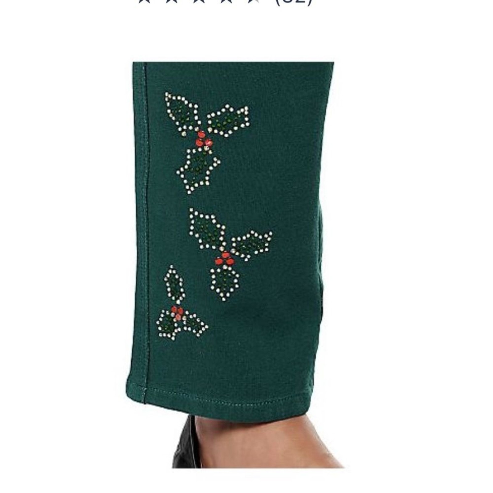 как выглядит NWT SZ L Quacker Factory Regular DreamJeannes Winter Motif Pants GREEN HOLLY фото