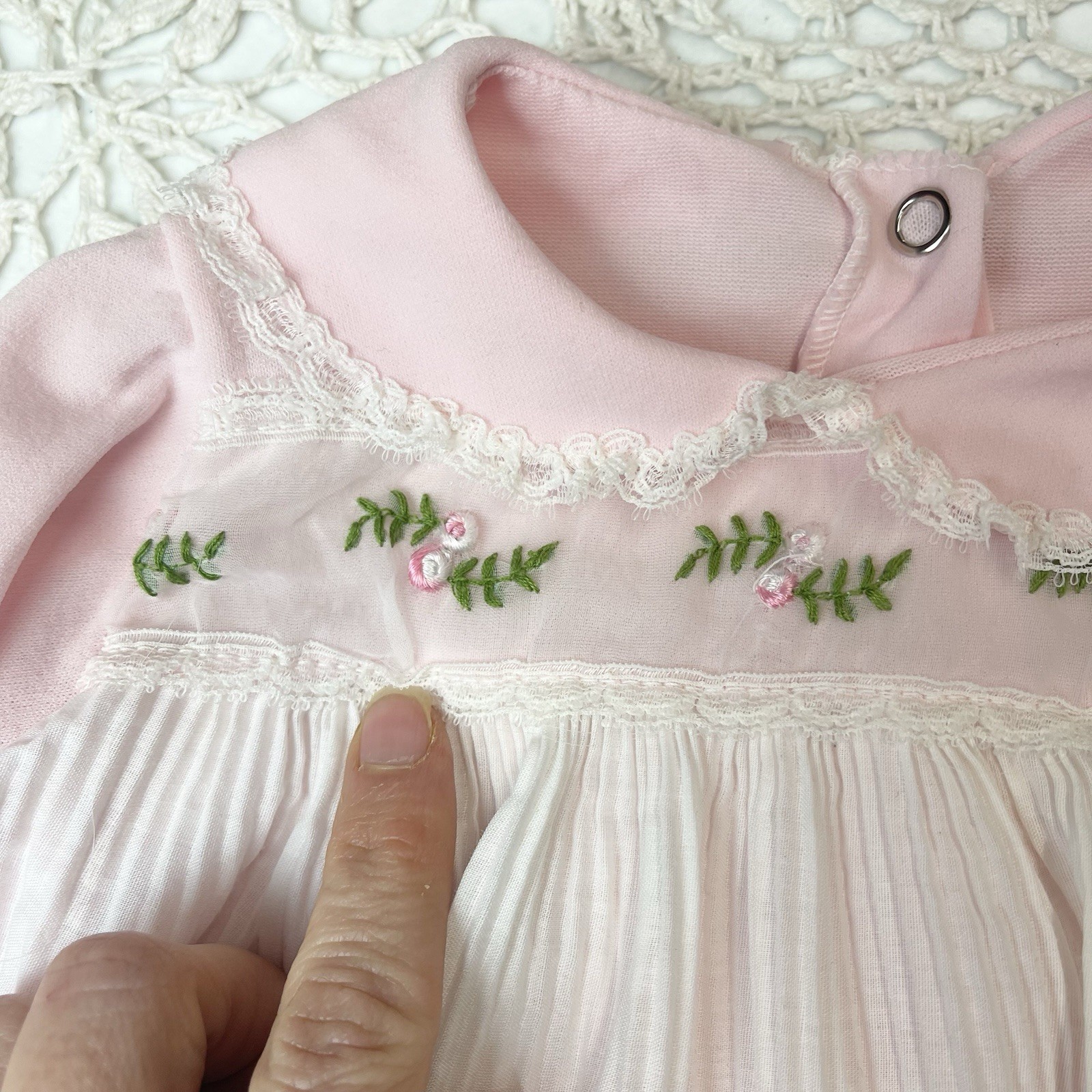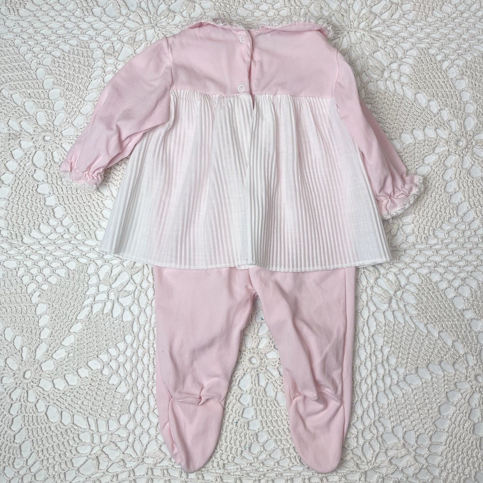 Vintage 1980s Baby Girl 0-3 Months Pink Nylon Skirted Footie Sleeper