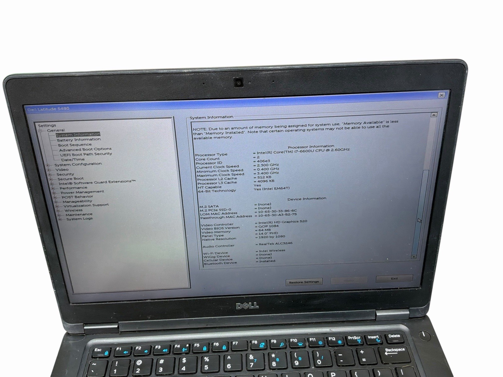 Dell Latitude 5480 i7-6600U 2.60ghz NO RAM/NO SSD/NO OS PARTS/REPAIR