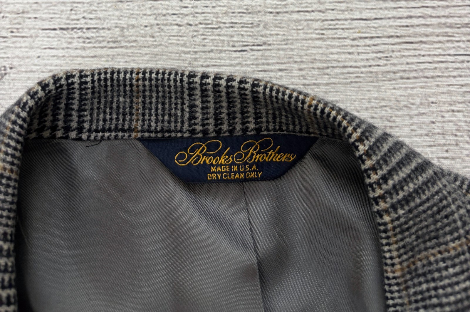 как выглядит BROOKS BROTHERS 100 CAMEL HAIR Mens 46R Black Tan Houndstooth Button Blazer EXC фото