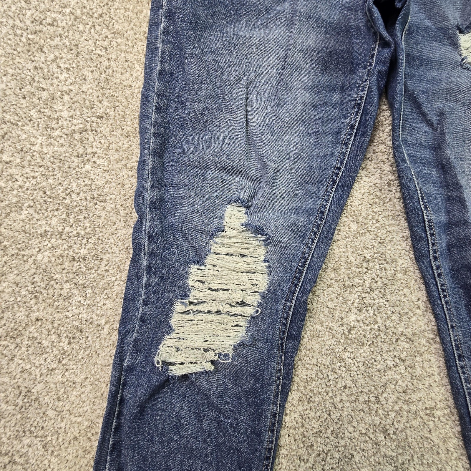 как выглядит SO Jeans Juniors 11/30W Medium Wash Blue Low Rise Boyfriend Distressed Denim фото