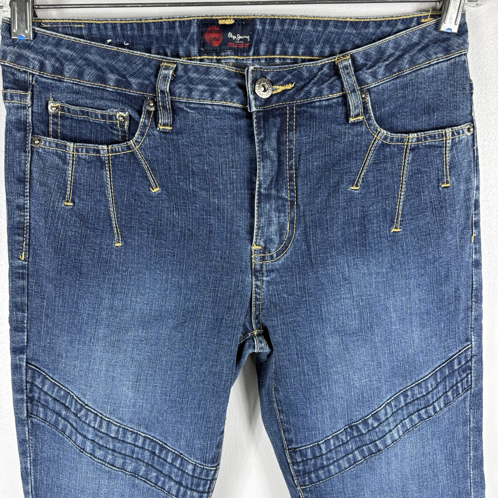 Pepe Jeans Women's 30 Blue Dark Wash Denim Zipper Detail Moto Style Flare Jeans