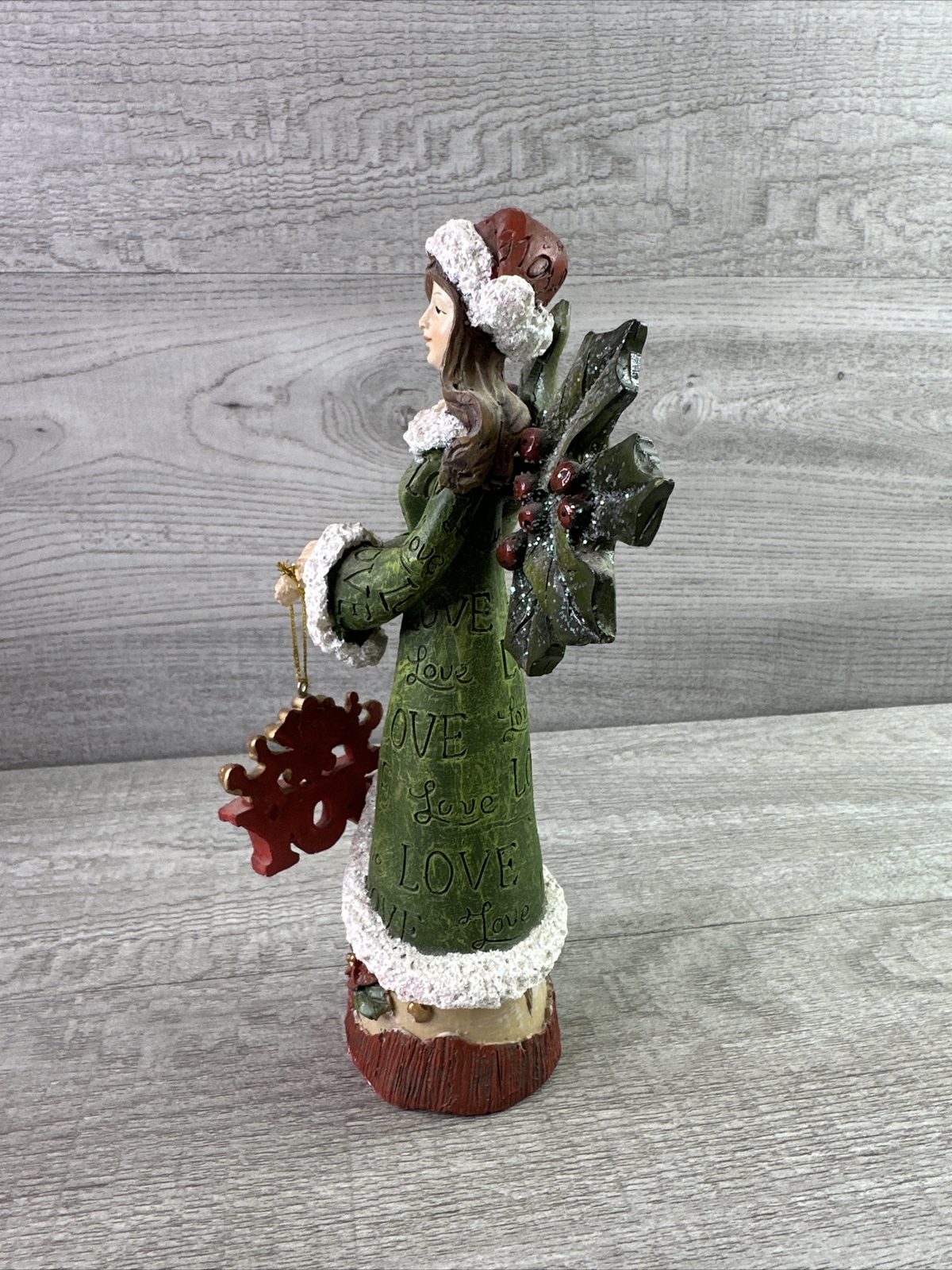 Unbranded Resin Christmas Angel Glitter Holly Wings Joy Love