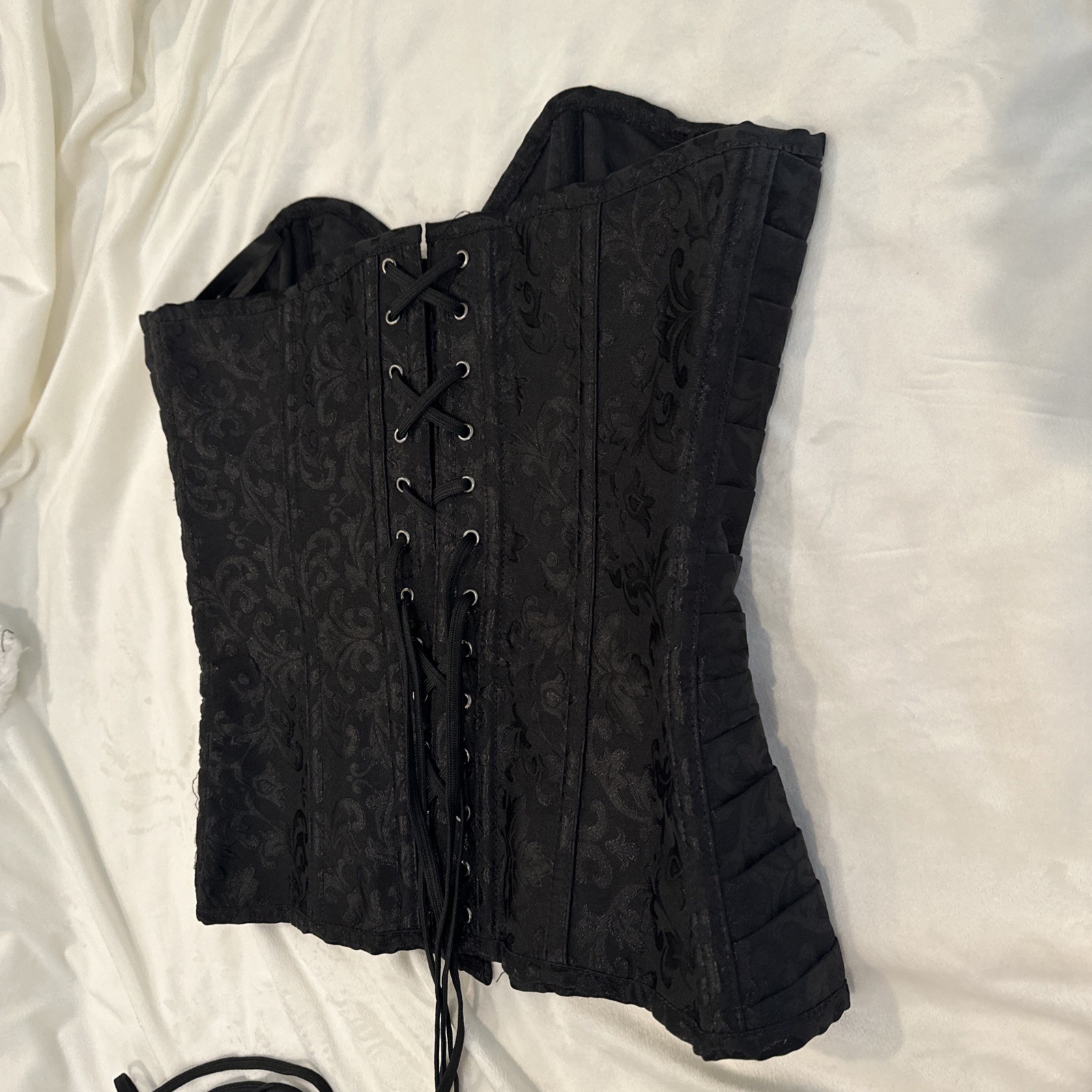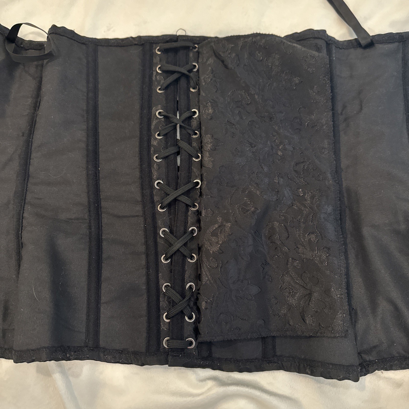 как выглядит Spirit Corset Sz XL Black Burgundy Gothic Lace Bustier Lace Up Zip Renaissance фото