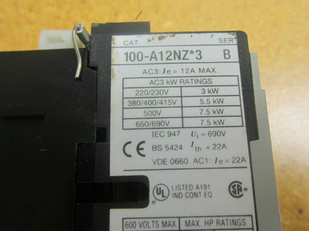 Allen Bradley 100-A12NZ 3 Ser B Contactor 12A 600V With 24VDC Coil