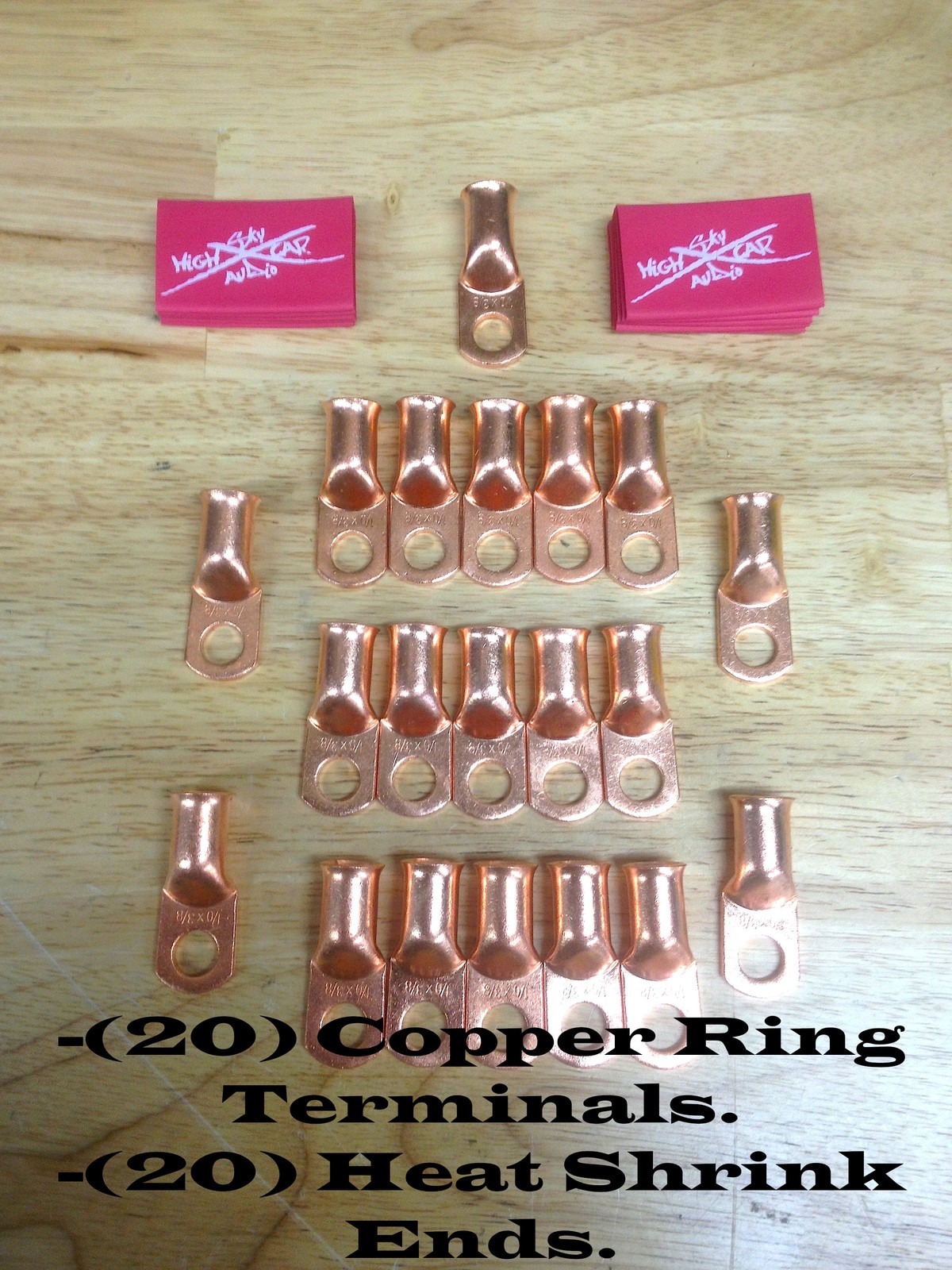 20 0 Gauge Copper Ring Terminals w/ RED Heat Shrink Tubing 1/0 GA LUGS 3/8