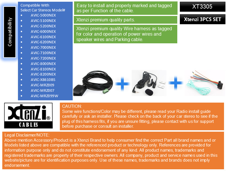 Xtenzi Connection Set for Pioneer AVIC-5000NEX 5100NEX 5200NEX 6000NEX 6100NEX