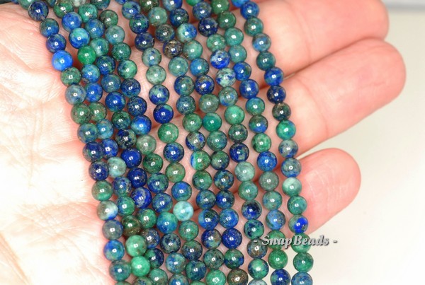 4MM AZURITE GEMSTONE BLUE GREEN ROUND 4MM LOOSE BEADS 16inch